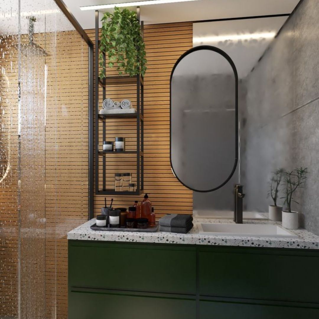 A combinação do verde com a madeira é outra maneira de remeter à natureza e aumentar o bem-estar nos ambientes.