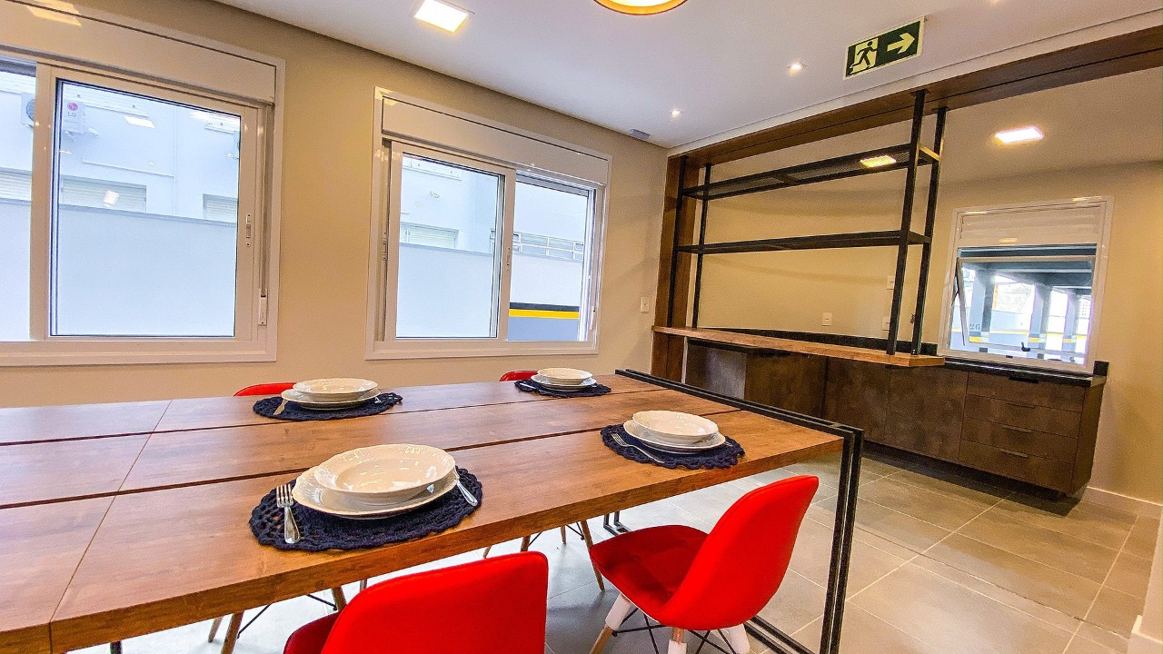 Condomínio: O espaço condominial conta com salão gourmet, bicicletário e 2 elevadores.