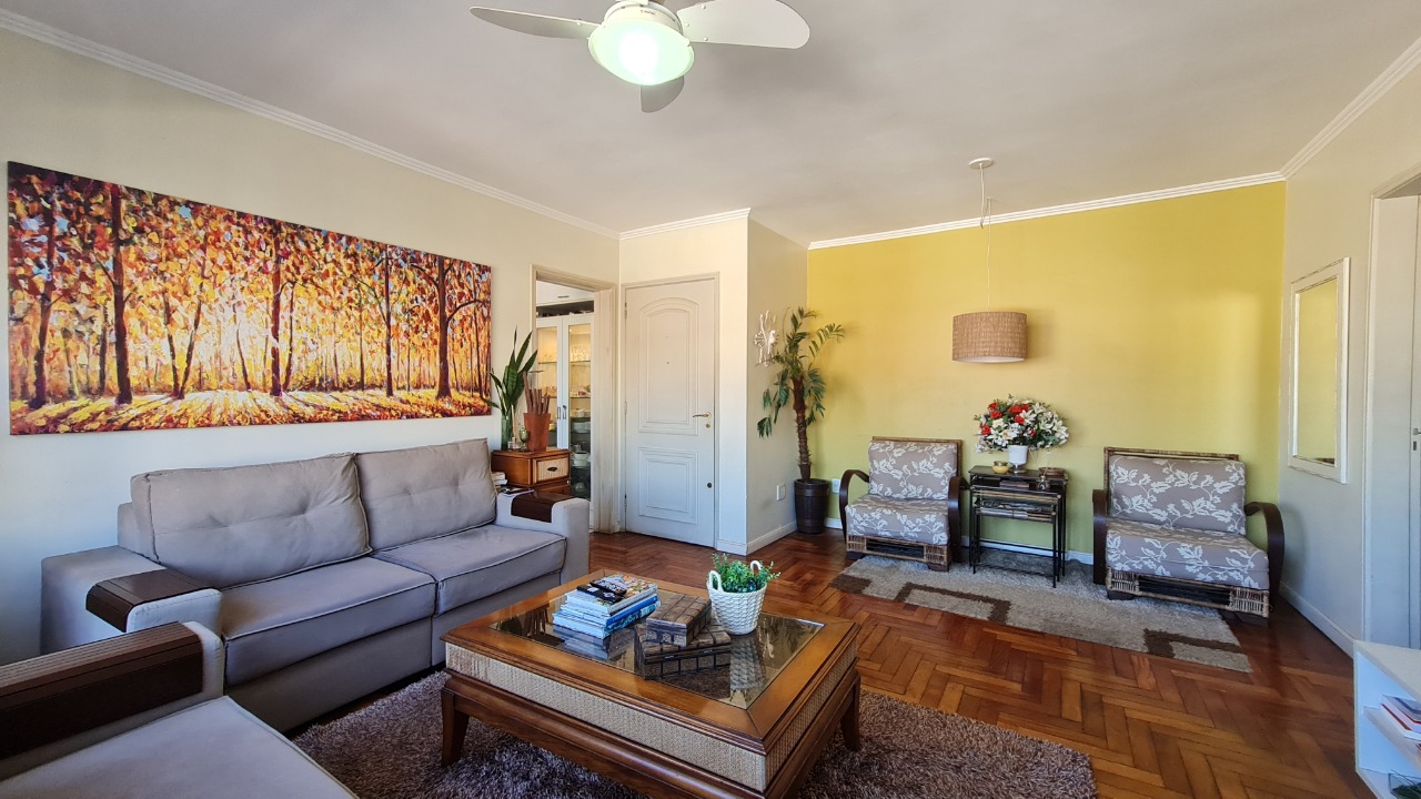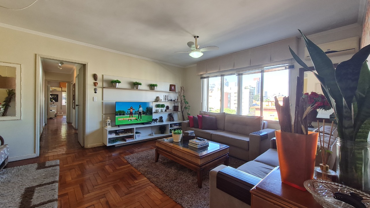Apartamento SEMIMOBILIADO com 115 m² de área privativa, 3 dormitórios, 1 suíte, living para dois ambientes, cozinha grande com copa, área de serviço separada com banheiro auxiliar e despensa. Com 2 vagas cobertas e individuais.