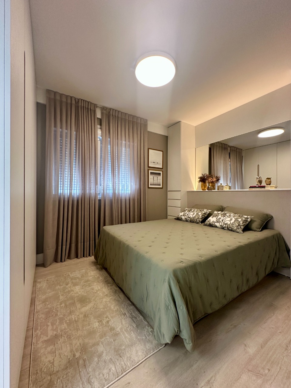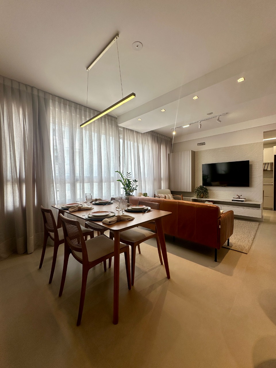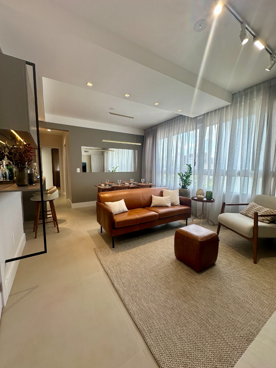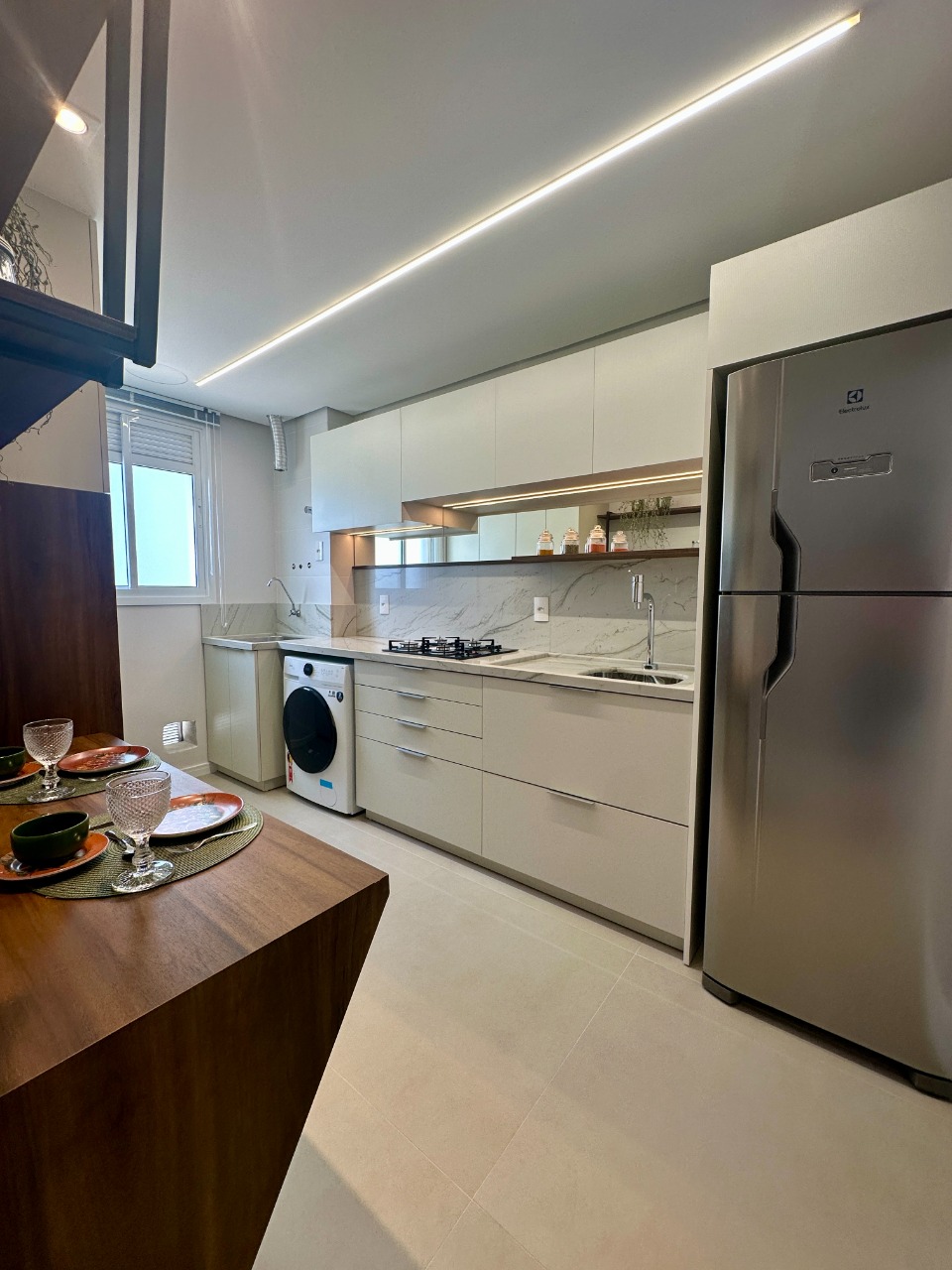 Apartamento com 62m² de área privativa. Possui 2 quartos, sendo, um deles, suíte, banheiro social, living para dois ambientes, churrasqueira, cozinha, área de serviço. Com 1 vaga na garagem.