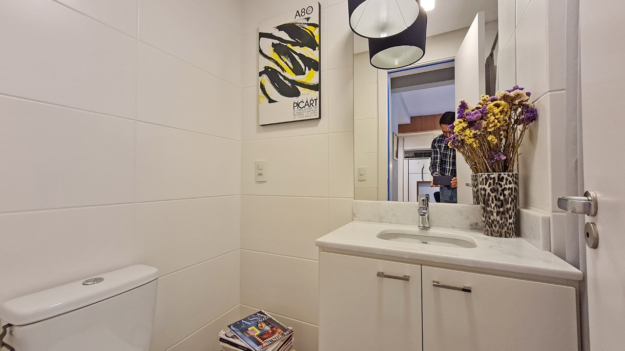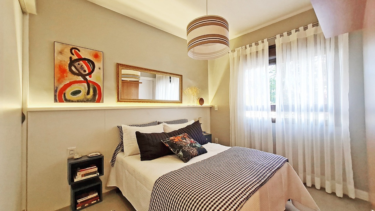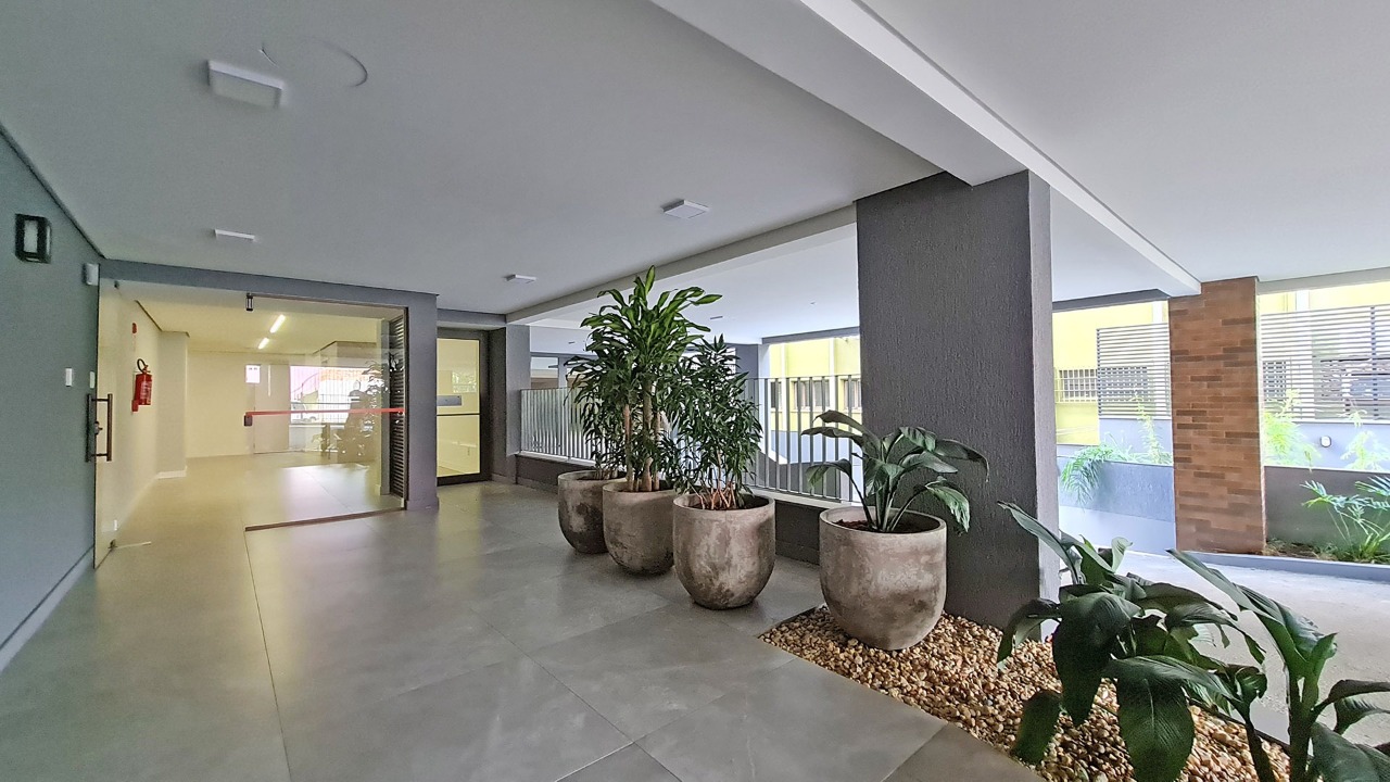Apartamento mobiliado com móveis sob medida, decoração, eletrodomésticos, piso, box nos banheiros, ares condicionados, aquecedor de passagem, com 67m², 2 quartos, 1 suíte, 1 banheiro, living para dois ambientes, churrasqueira, cozinha, área de serviço e vaga para carro.