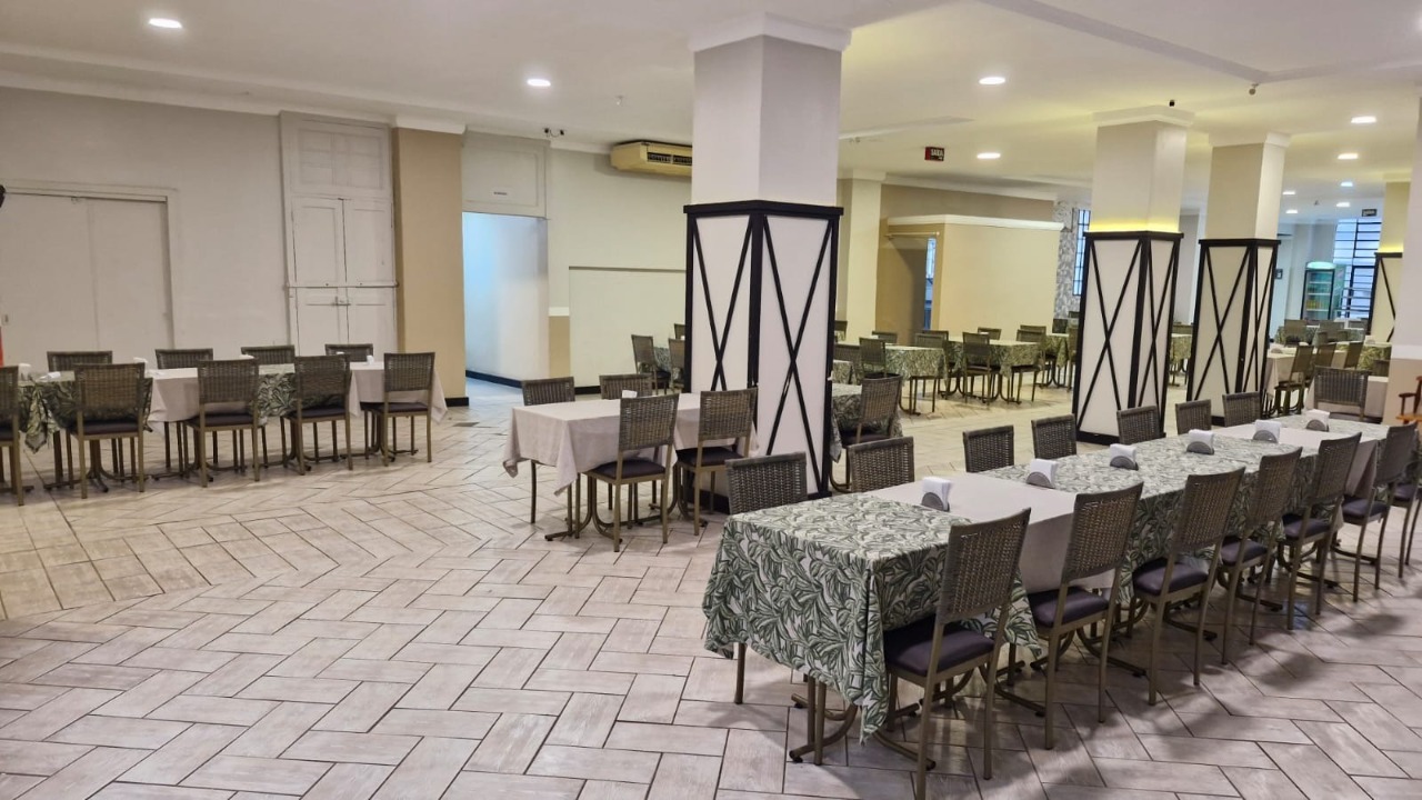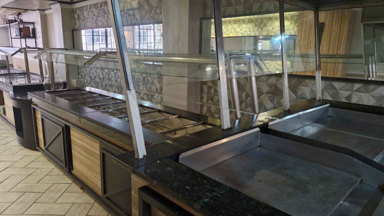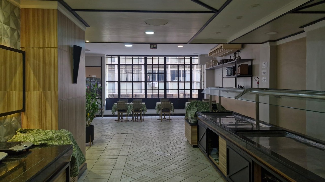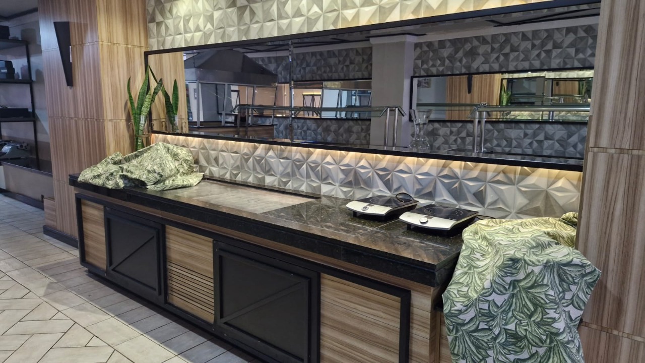 Na parte social: mesas, cadeira, pratos, cutelarias, panela elétrica, 12 metros de balcão que fica aquecendo a comida, 1 fogão por indução com 4 bocas, 2 chapas para fazer carnes grelhadas na hora com exaustor, 4 maquinas de servir sucos, mesa e sobremesa, 1 sorveteira, balcão do caixa na recepção com 2 metros de largura, escritório fechado com circuito e TV de todo restaurante, cozinha toda montada, câmera fria, geladeira, freezer, fogão industrial, panelas, cutelaria