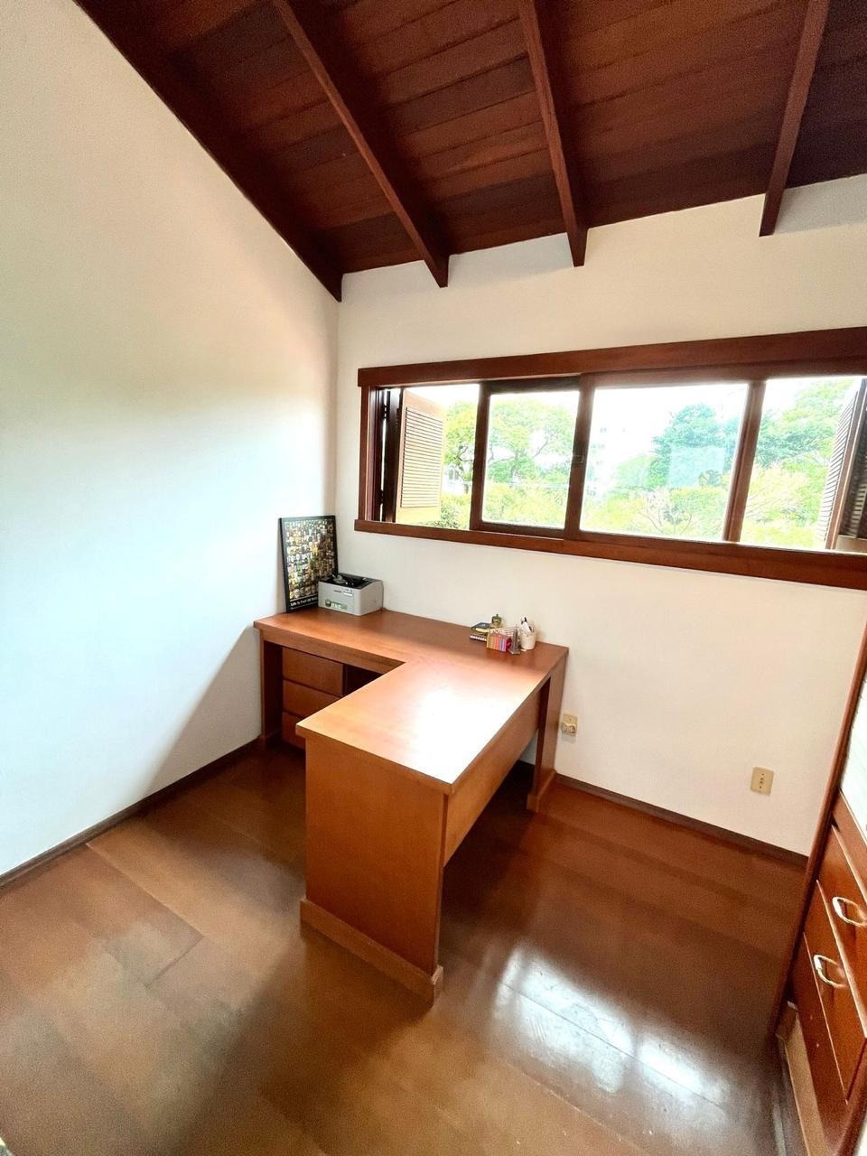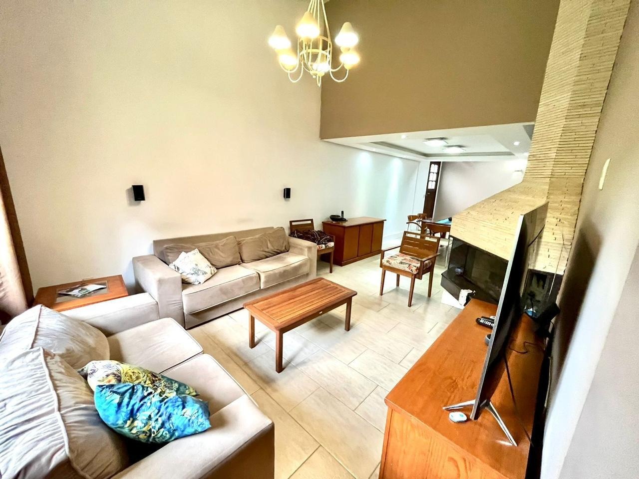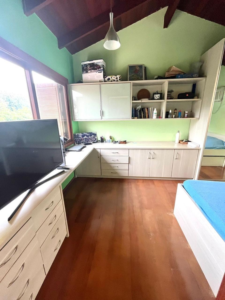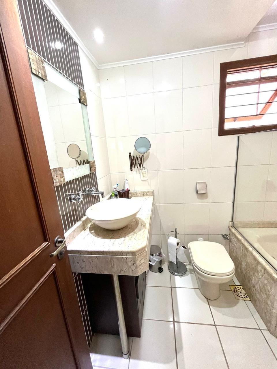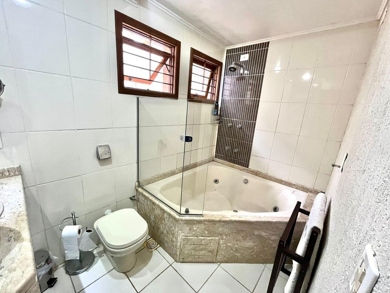 Ótima casa em condomínio fechado, ensolarada e bem ventilada, 5 dormitórios sendo 1 suíte máster com closet, 220 m² área útil, 3 banheiros, 2 vagas, cozinha, churrasqueira, estar íntimo, lareira, sala de jantar, sala de tv, ar condicionado área de serviço, lavabo, agua quente em toda casa, gradeada, dependência de empregada com banheiro, rua silenciosa e bem arborizada.