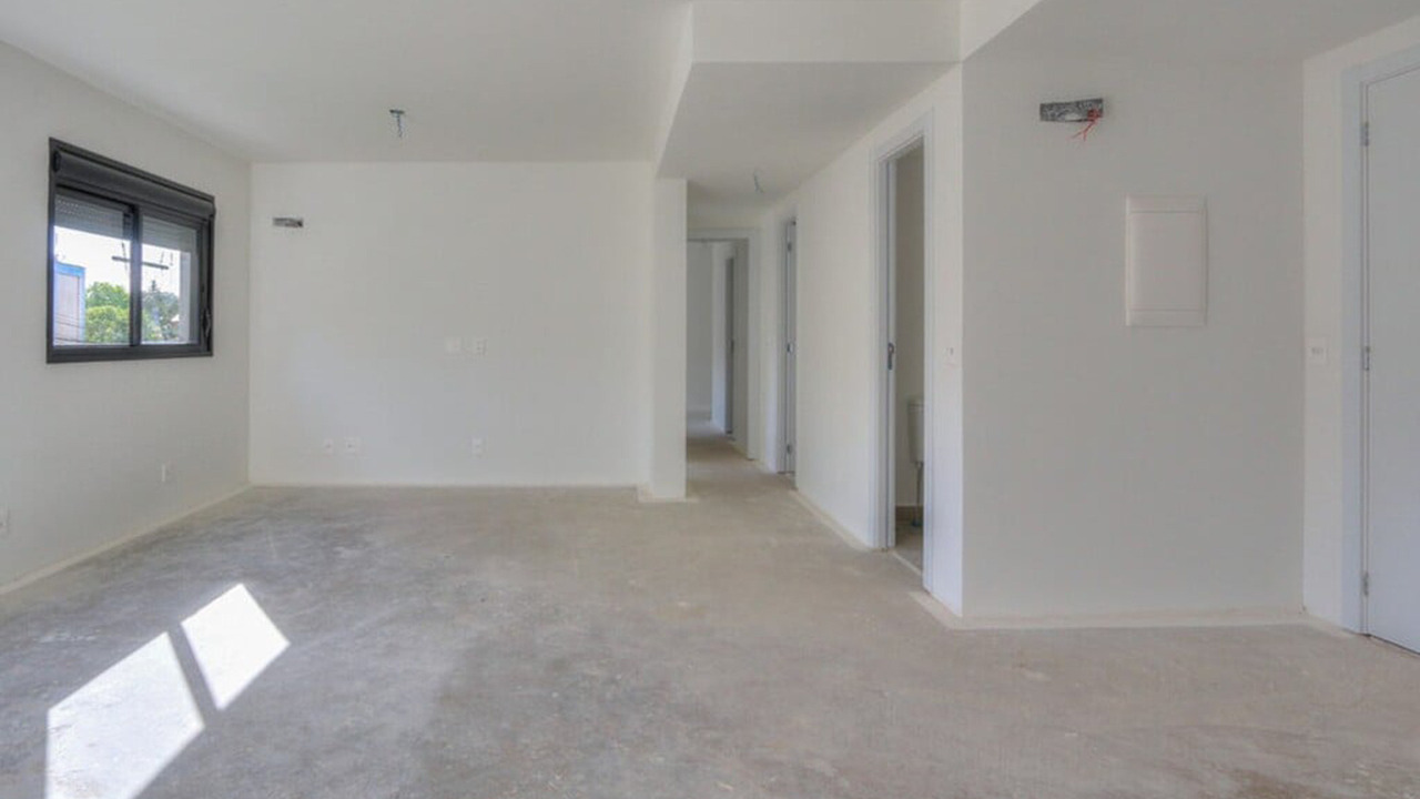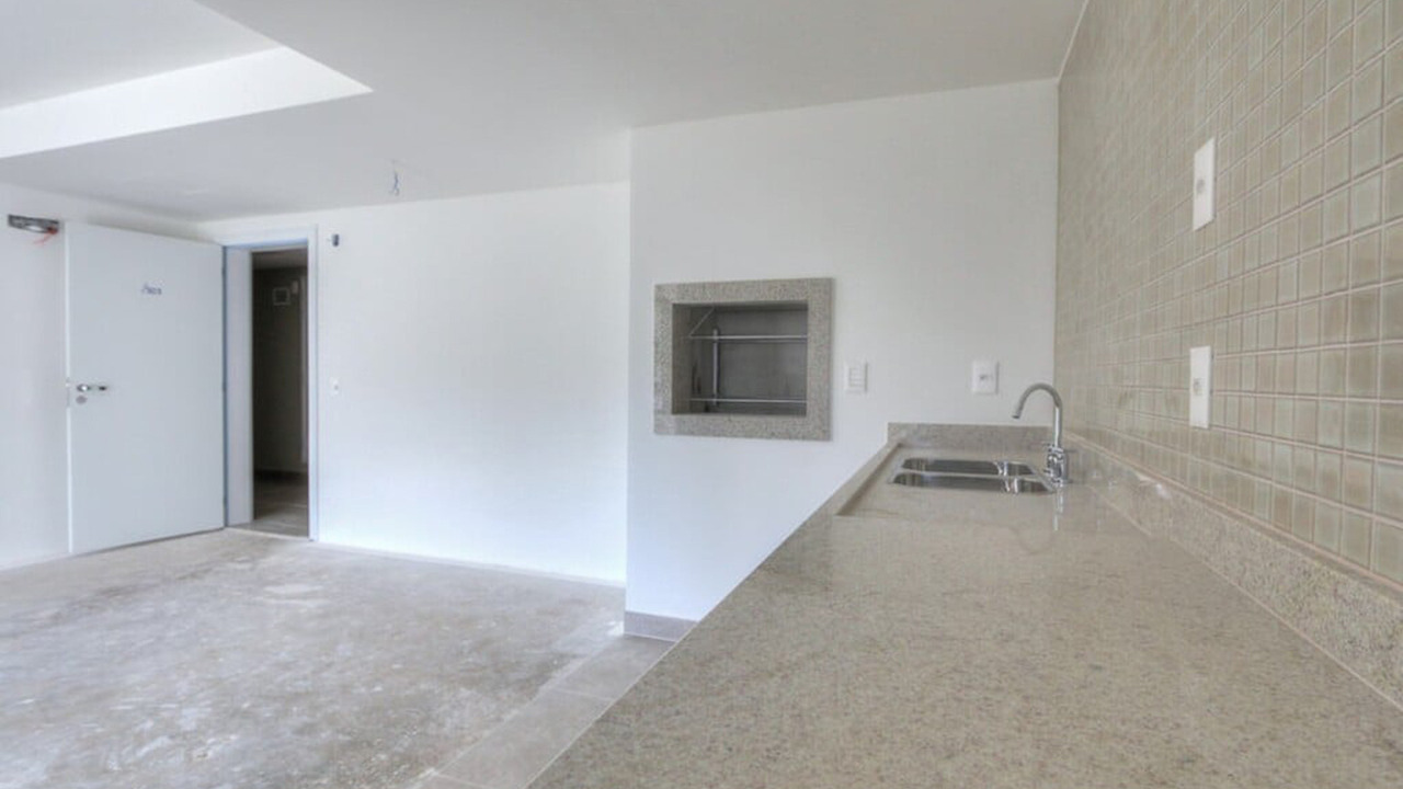 Apartamento com 92,57m2 de área privativa, 3 quartos, 1 uma suíte, living para dois ambientes, cozinha com churrasqueira e com área de serviço, banheiro social e 2 vagas na garagem.