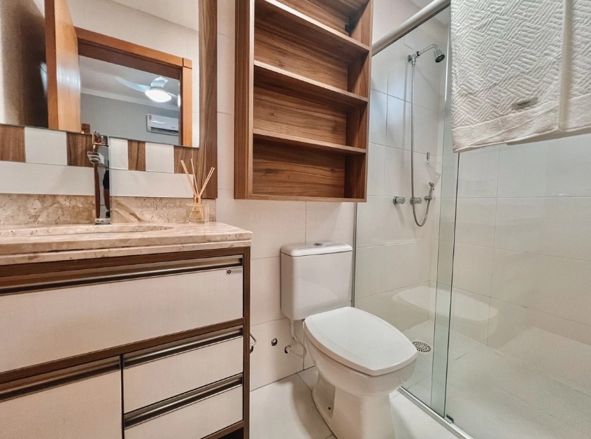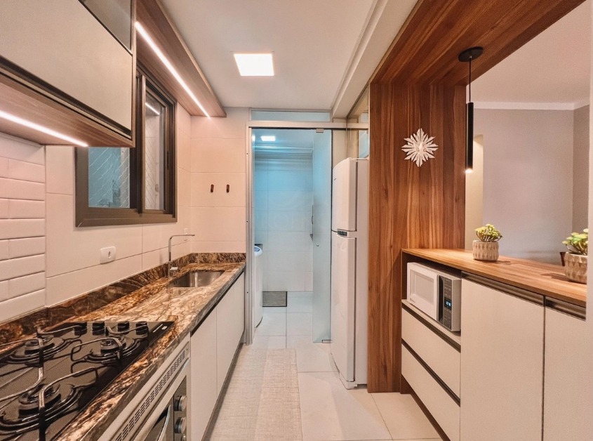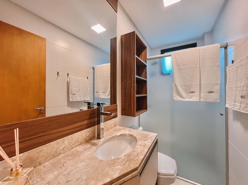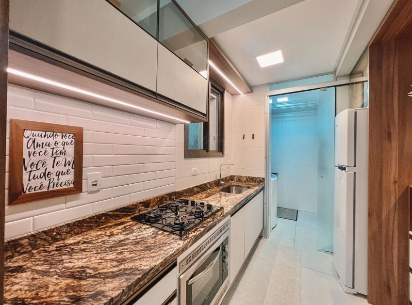 Acabamento classe AA, piso em porcelanato, gás central, espera para ar Split e TV a cabo, hidrômetro individual, esquadrias externas em alumínio, fachada 100% revestida com cerâmica, 02 elevadores e porteiro eletrônico com senha individual,living estar/jantar, cozinha americana, área de serviço, todas as peças com muita luz e ventilação natural, peças amplas e claras, o que proporciona muito conforto e bem estar.