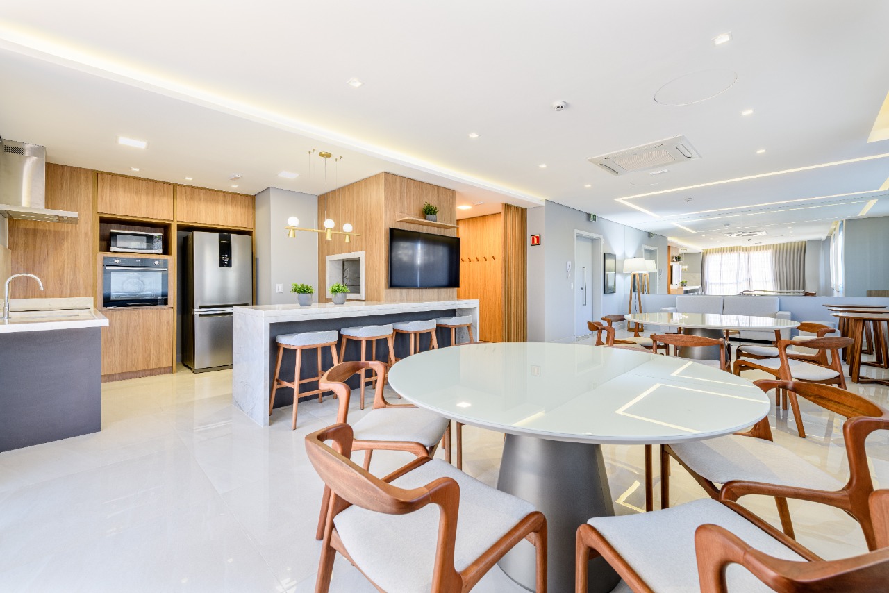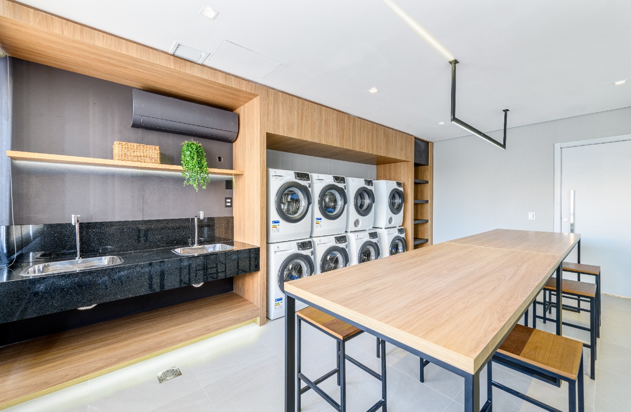 O fitness center é um convite para se manter ativo. O hall com pé direito duplo proporciona uma atmosfera sofisticada. A lavanderia e o lounge são comodidades essenciais.