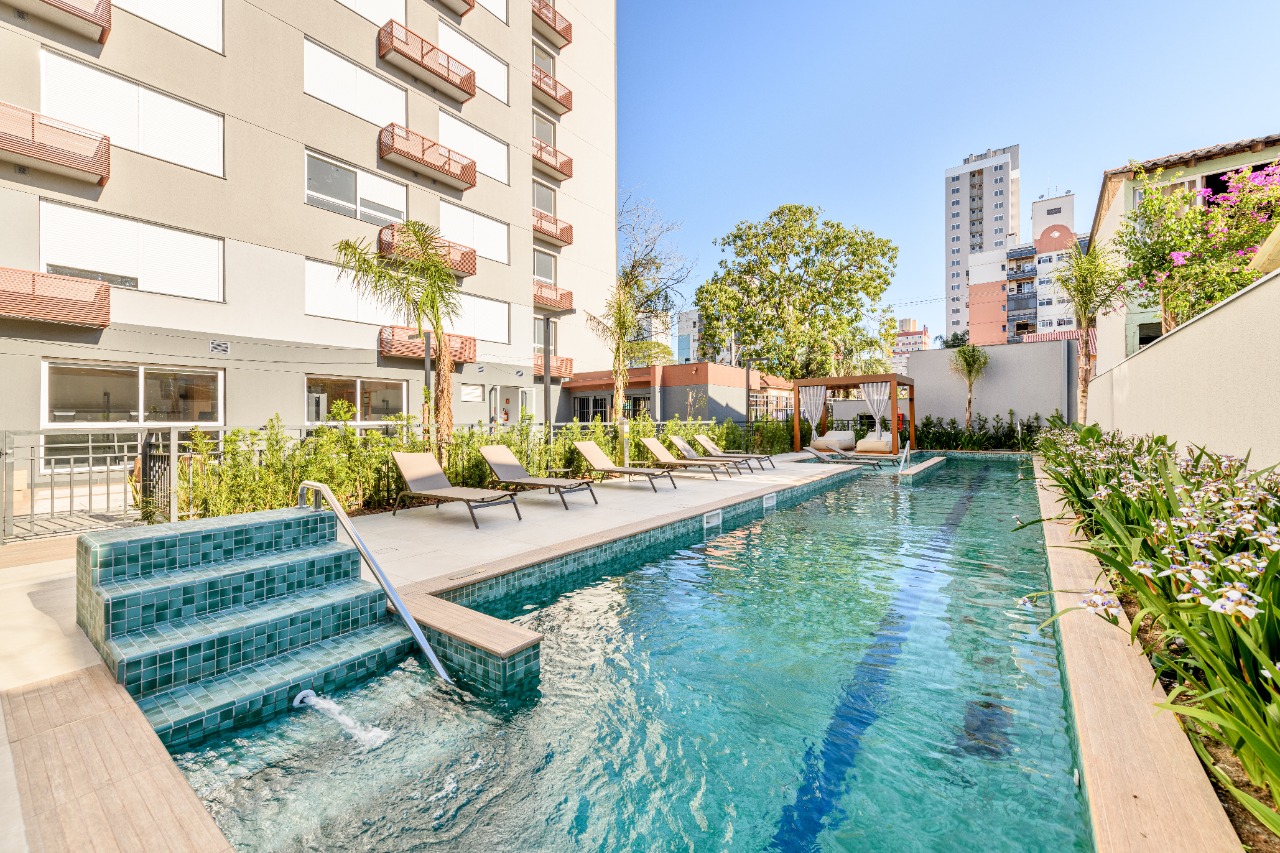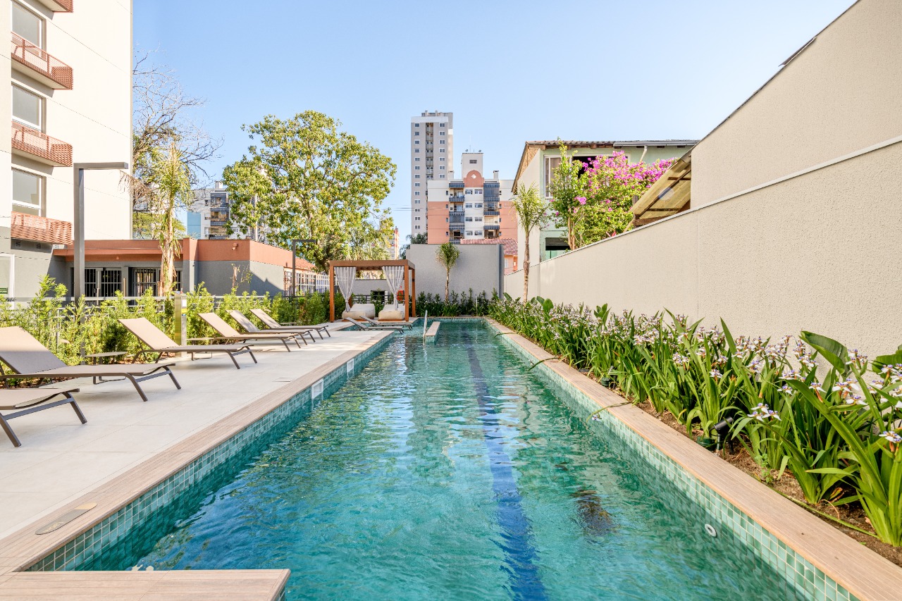 A piscina, a portaria, o porte cochère, o salão de festas e o terraço coletivo completam as opções de lazer e praticidade.