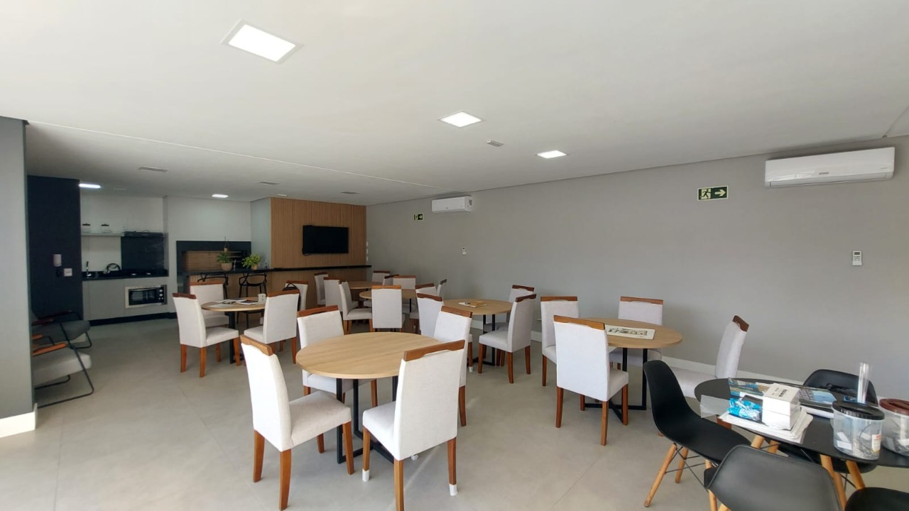Apartamento com 90,46m2 de área privativa. Possui 3 quartos, sendo, deles, 1 suíte, banheiro social, living para dois ambientes, cozinha com churrasqueira e com área de serviço. Com 2 vagas individuais na garagem com um depósito.