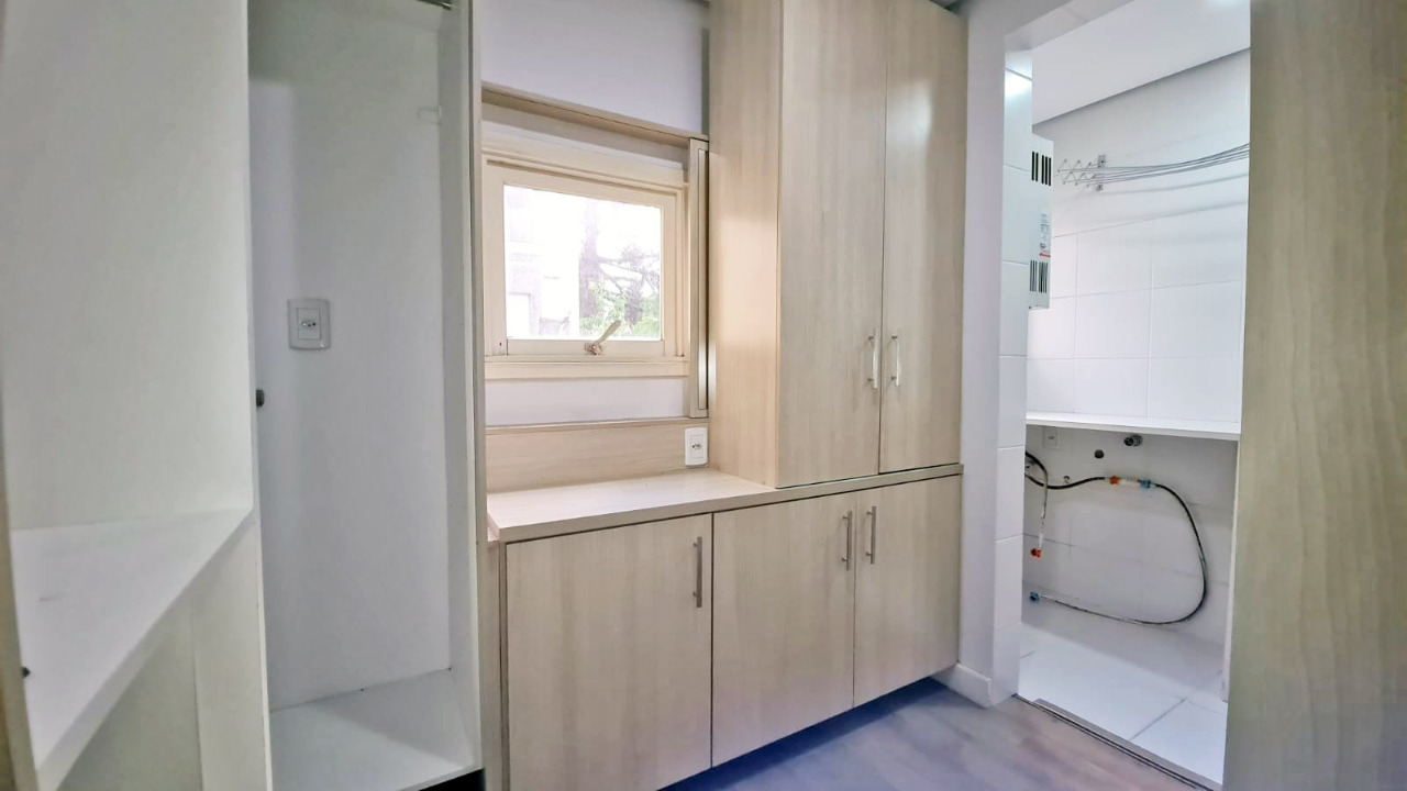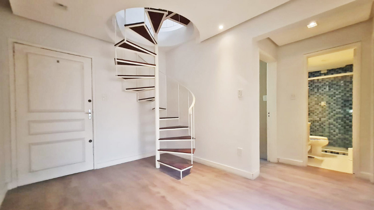 Cobertura duplex com 84m2 de área privativa. No primeiro pavimento, possui 2 dormitórios, 1 banheiro social e um closet. No segundo pavimento, possui a sala de estar com espaço para dois ambientes e lareira, cozinha americana, churrasqueira, um lavabo e 1 vaga na garagem. O imóvel está sendo vendido mobiliado conforme as fotos.