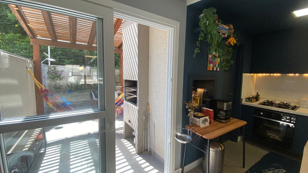 Casa em condomínio com 155,78m2 de área privativa. Possui 3 quartos sendo, uma suíte com closet, sala de estar, cozinha, área de serviço, banheiro auxiliar, lavabo, espaço coberto nos fundos com churrasqueira e 2 vagas garagem.