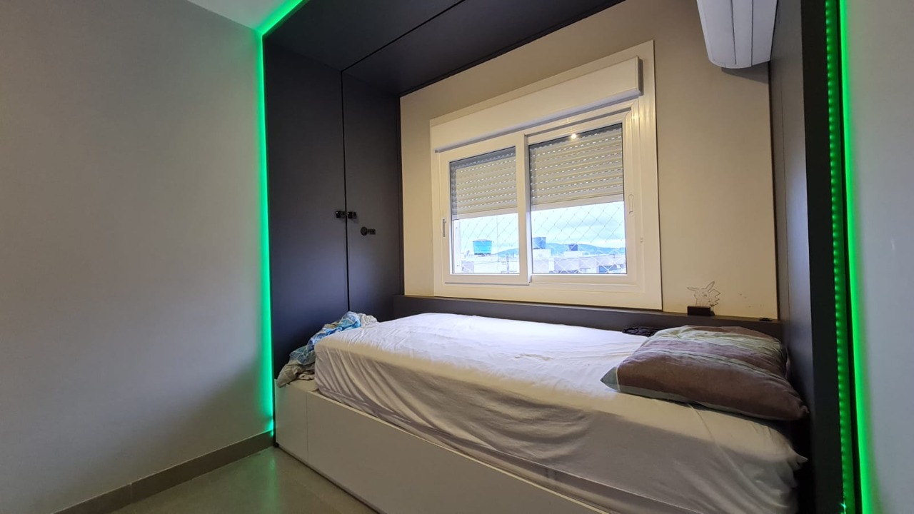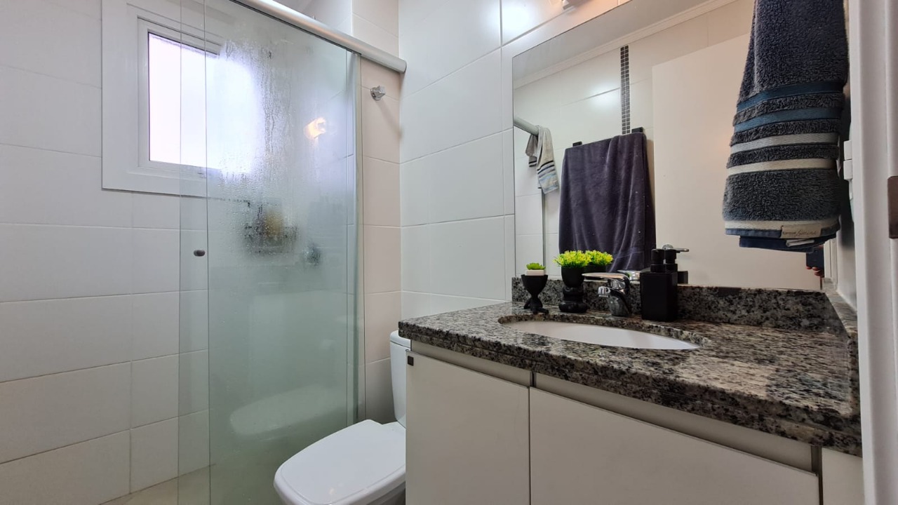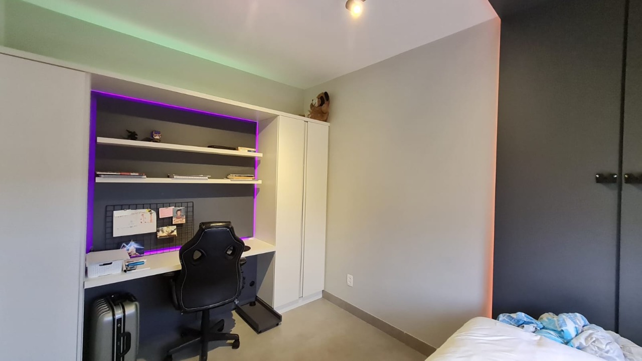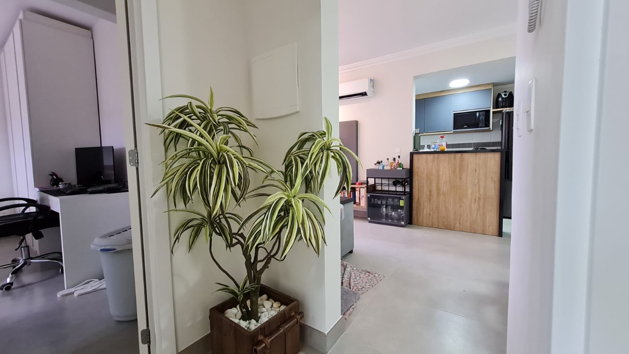 Apartamento semi mobiliado com 69m2 de área privativa. Possui 2 quartos, sendo, um deles, suíte, living para dois ambientes, banheiro social, cozinha com armários sob medida e churrasqueira, área de serviço integrada. Com 2 vagas cobertas. Ficam todos os móveis fixos.