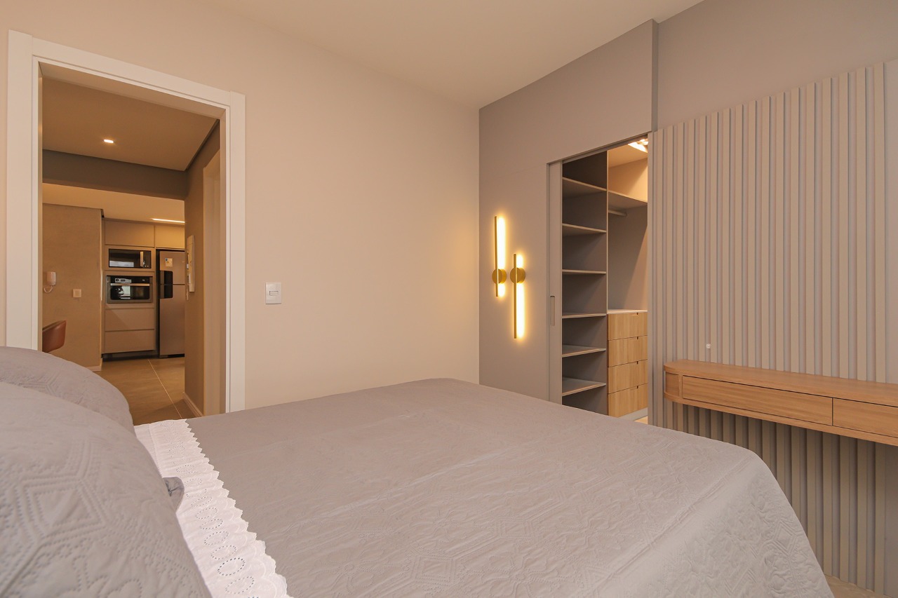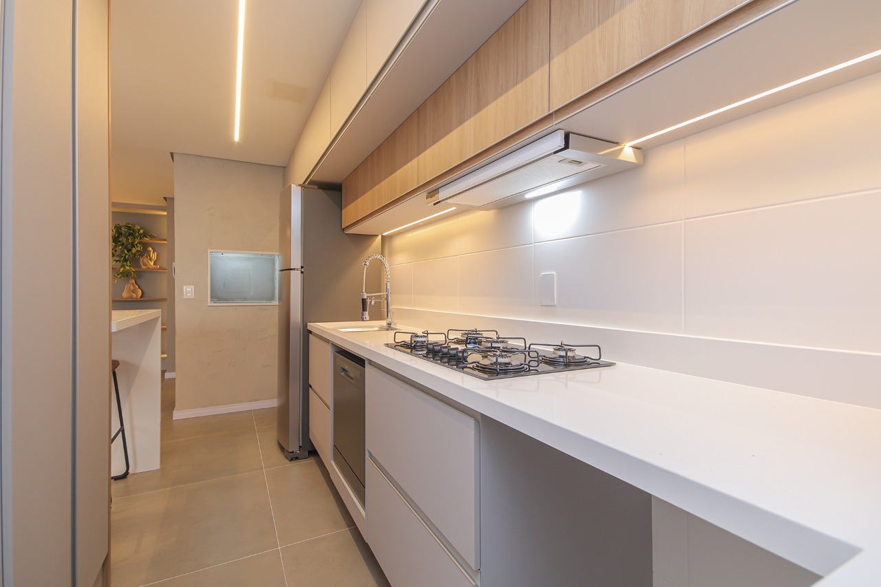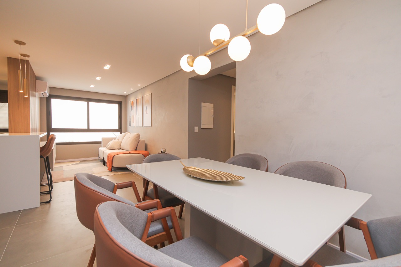 Apartamento com 80,86m2 de área privativa. Possui 3 quartos, 1 suíte, living para dois ambientes, cozinha integrada com churrasqueira e área de serviço. Possui 1 vaga de garagem.
