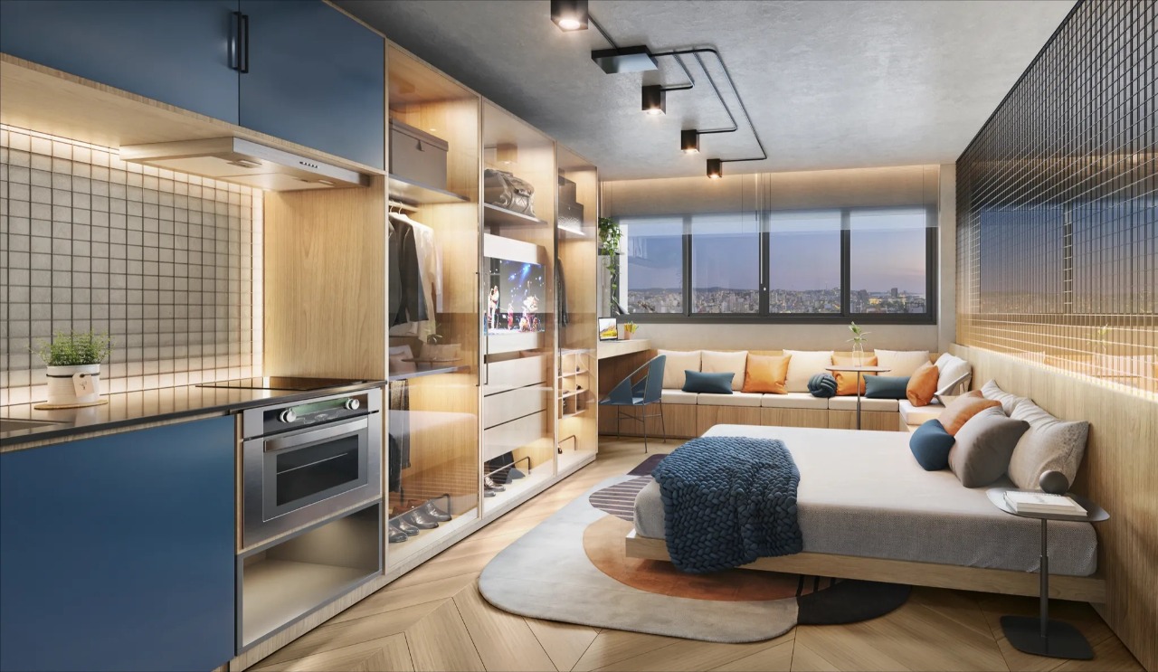 Apartamento com 46,83m2 de área privativa. Possui 1 suíte, living amplo, cozinha americana com churrasqueira e lavabo. Conta ainda com 1 vaga na garagem.
