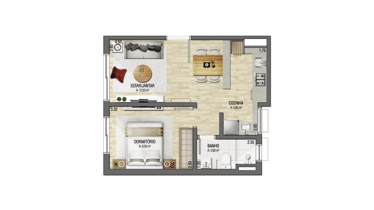 Imagens meramente ilustrativas. Valor referente à unidade 204 no mês de Novembro de 2023. Sujeito a alteração do valor conforme atualização da tabela da construtora. Sujeito à disponibilidade da unidade.