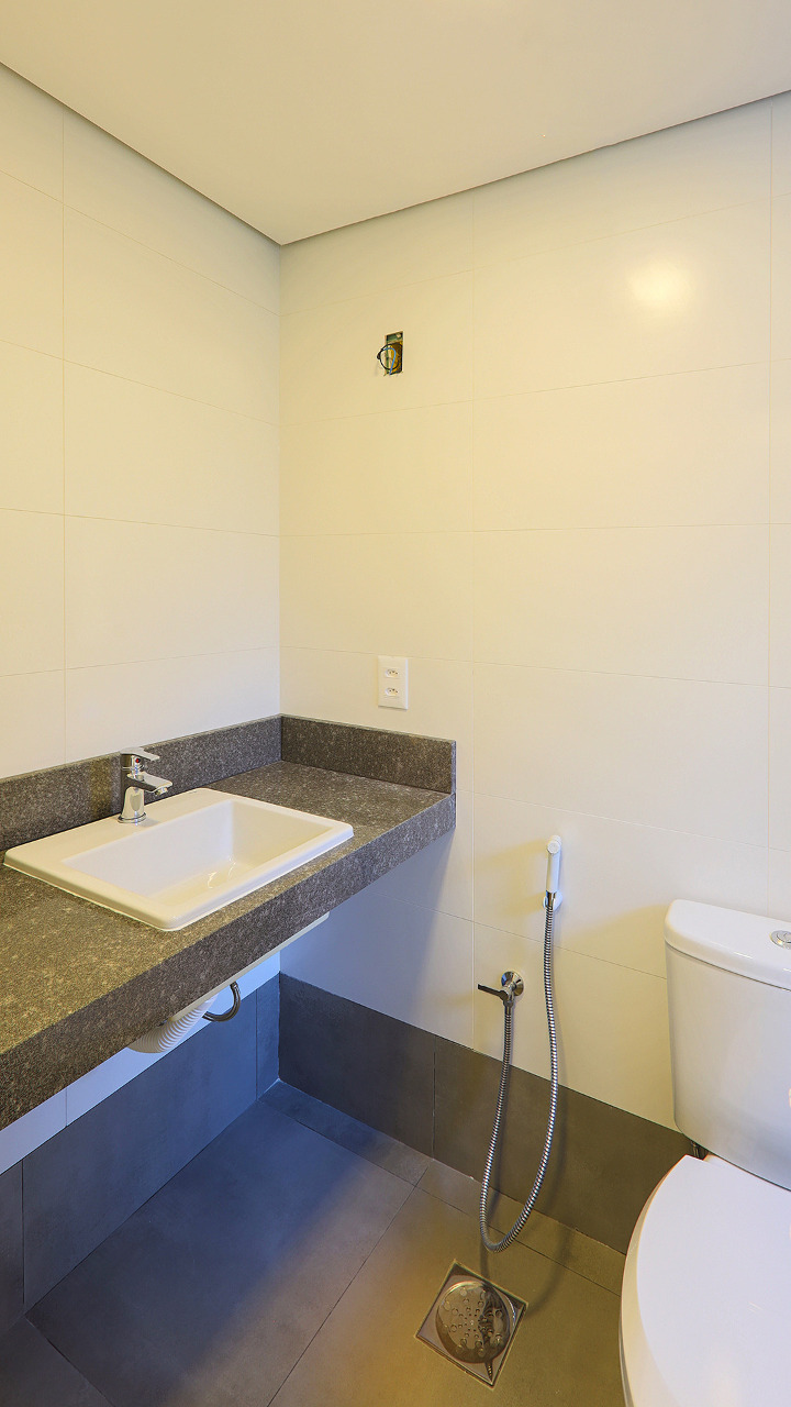 Apartamento com 100,84m2 de área privativa. Possui 3 suítes, sala de estar, cozinha com churrasqueira e com área de serviço, lavabo, e uma vaga de garagem para 2 carros.