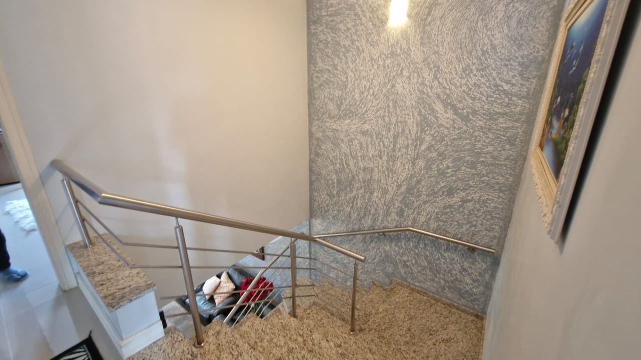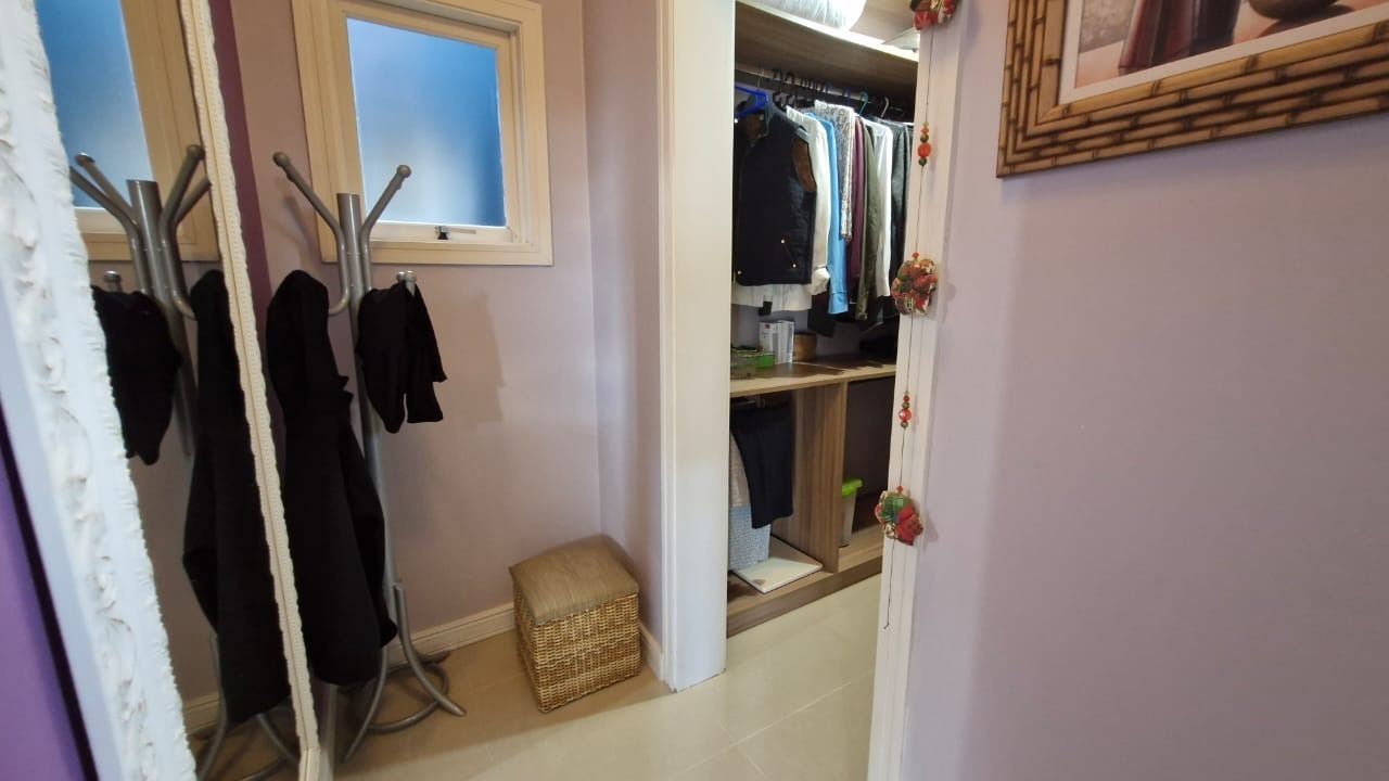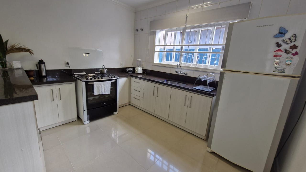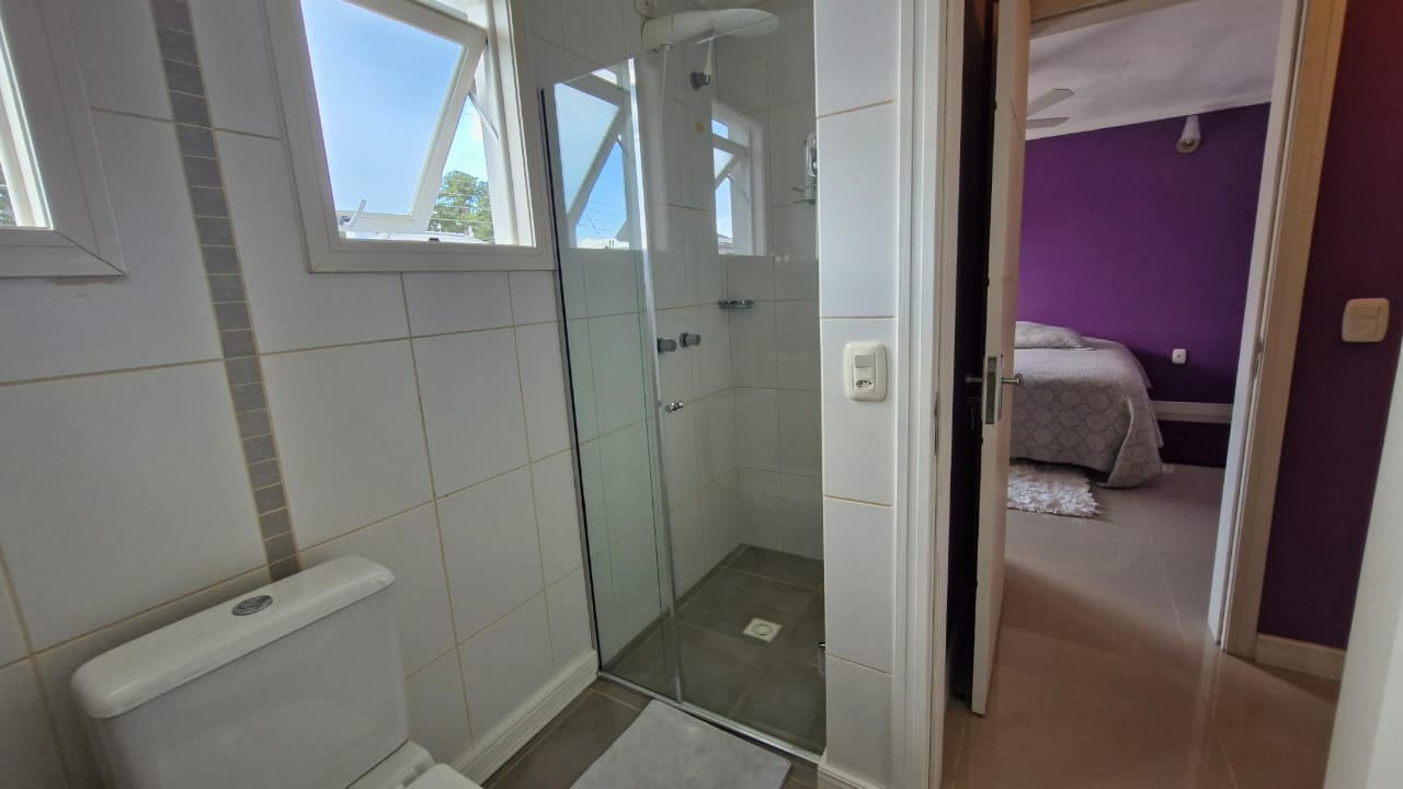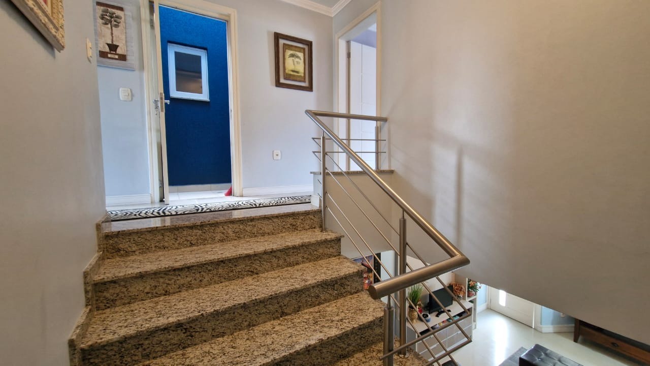 Casa em Condomínio Fechado em ótimo estado de conservação, com 3 dormitórios, 1 suíte com closet, casa bem ensolarada, ventilada, sacadas no quarto da frente e nos fundos, banheiro social amplo, escada toda revestida em pedra granito, sala de estar bem aconchegante, cozinha enorme com granito preto e mesa de jantar, toda casa revestida com piso cerâmico, Lavabo, churrasqueira, área de serviço, pátio interno, despensa, garagem fechada para 1 automóvel, casa feita e decorada por arquiteto.