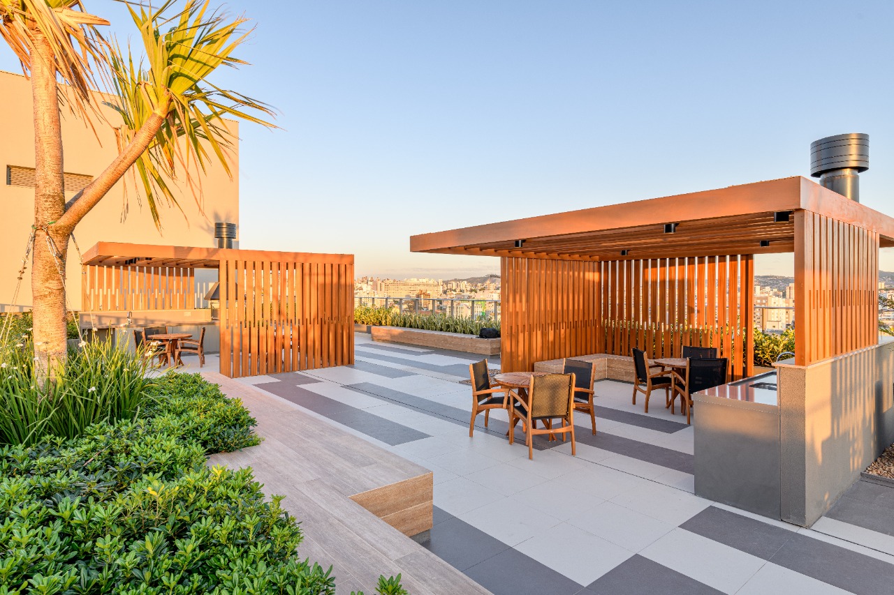 Conta também com uma infraestrutura de lazer completa no rooftop do empreendimento, além de espaço coworking, lavanderia compartilhada, espaço gourmet, espaço loung.