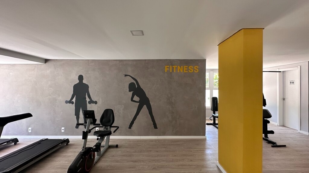 Condomínio com espaço gourmet externo e interno, salão de festas, fitness, brinquedoteca e playground.