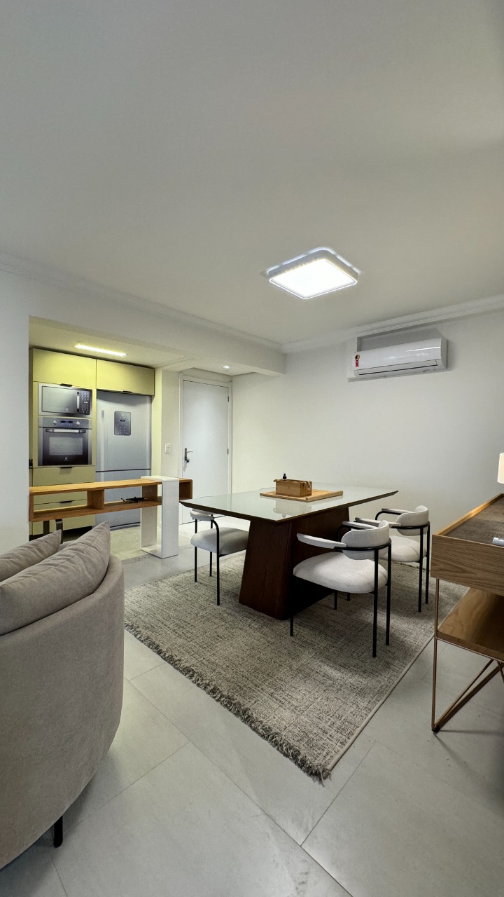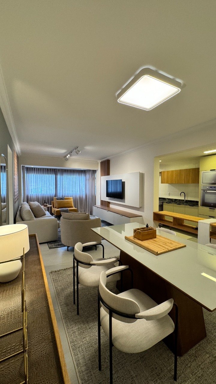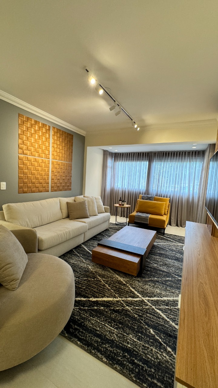Apartamento mobiliado e decorado com 91,84 m² privativos. Possui 3 quartos, sendo, um deles, suíte, banheiro social, living amplo para dois ambientes, cozinha, área de serviço. Com 1 vaga para carro.