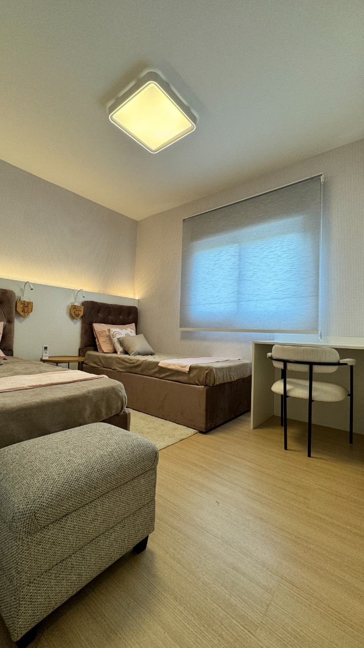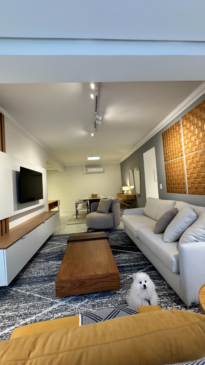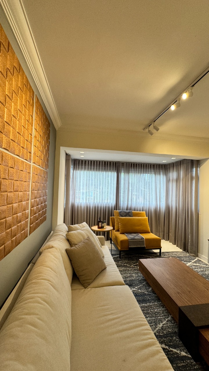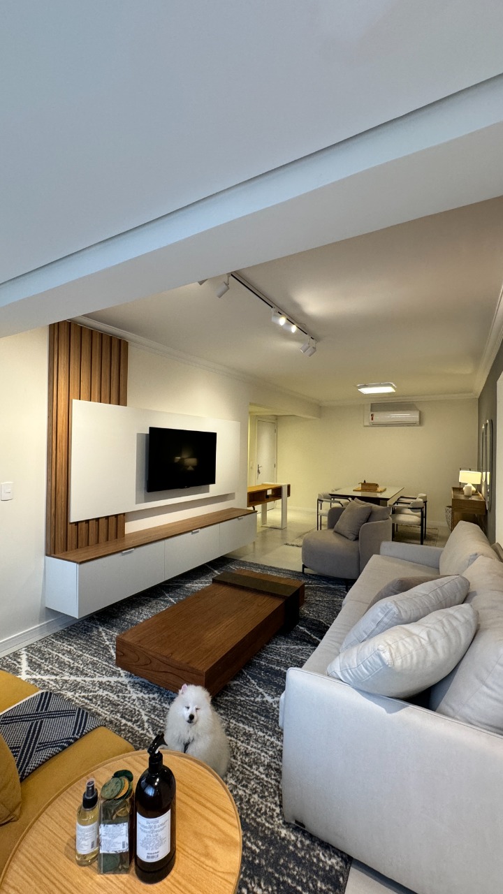 Apartamento mobiliado e decorado com 91,84 m² privativos. Possui 3 quartos, sendo, um deles, suíte, banheiro social, living amplo para dois ambientes, cozinha, área de serviço. Com 1 vaga para carro.