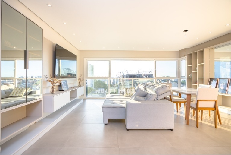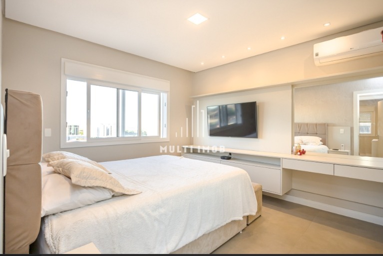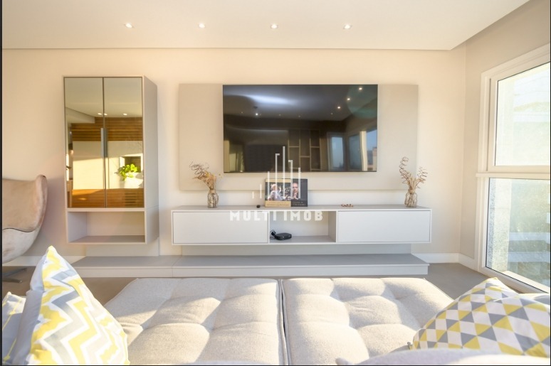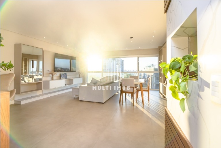 Excelente padrão de acabamento, 3 dormitórios sendo 1 suíte, amplo living 3 ambientes, lavabo, janelas piso teto, cozinha americana com churrasqueira e área de serviço separada.