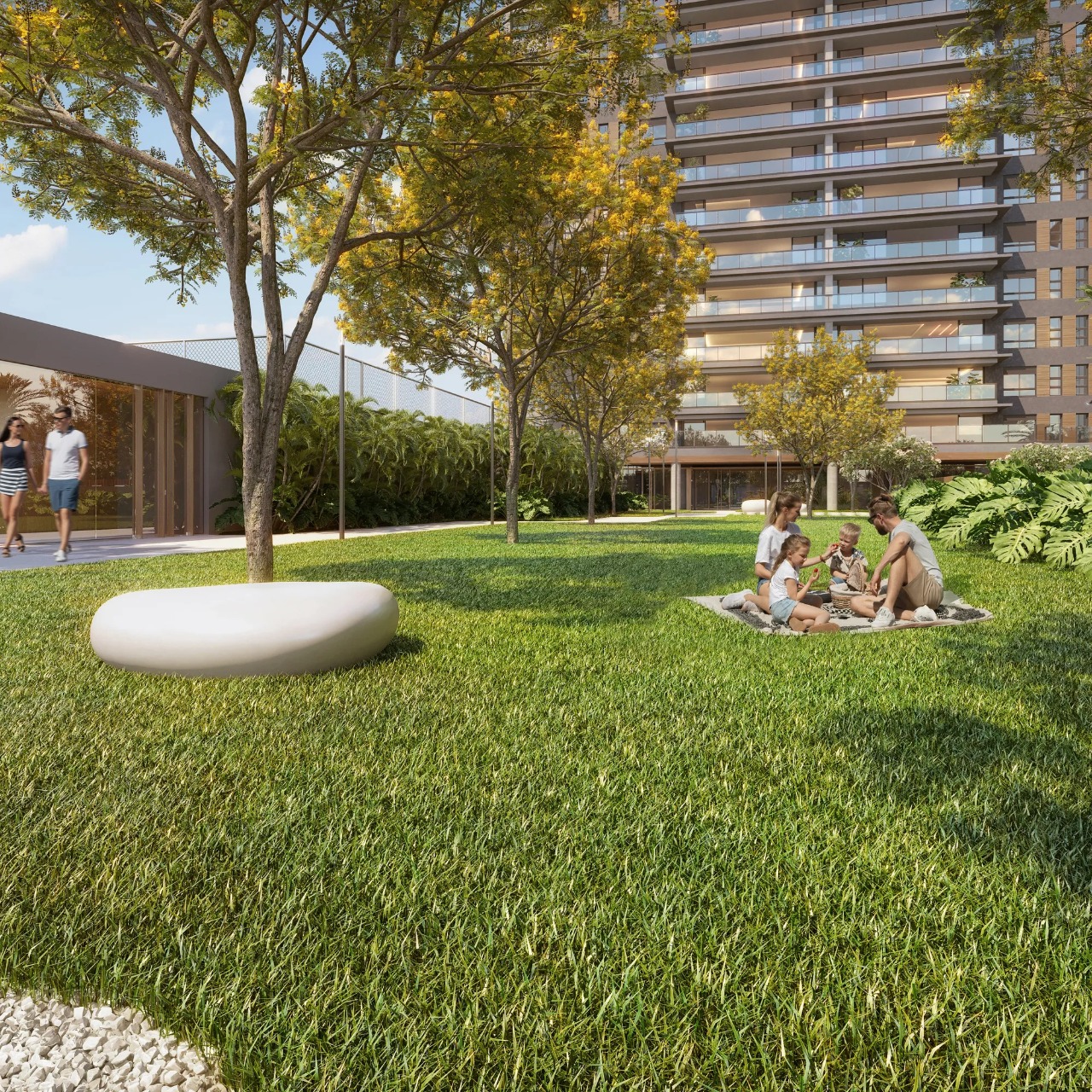 O apartamento possui três suítes, incluindo uma suíte master com closet, oferecendo privacidade e conforto excepcionais. O living amplo com sacada é perfeito para momentos de convivência e lazer, proporcionando um espaço arejado e iluminado.