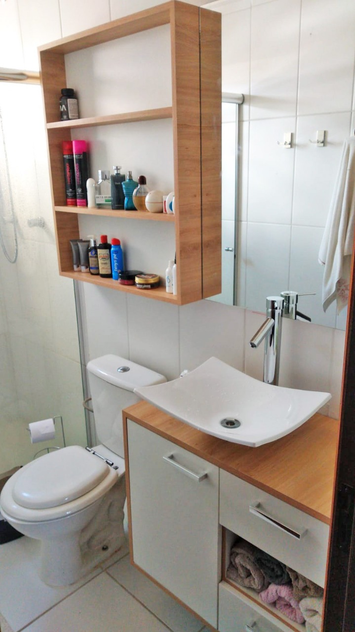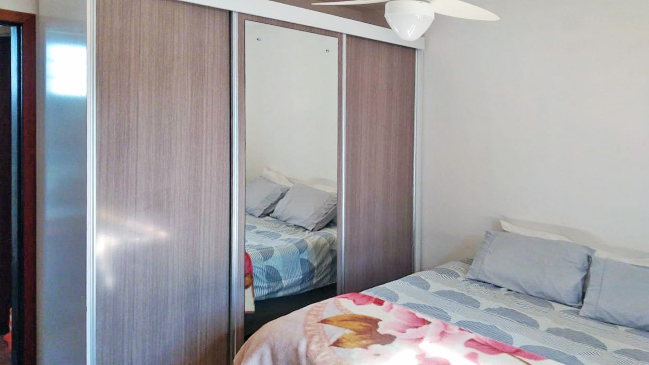 Parte superior com 2 dormitórios em piso laminado e banheiro social com móveis planejados. Possui sótão e vaga para 1 carro.