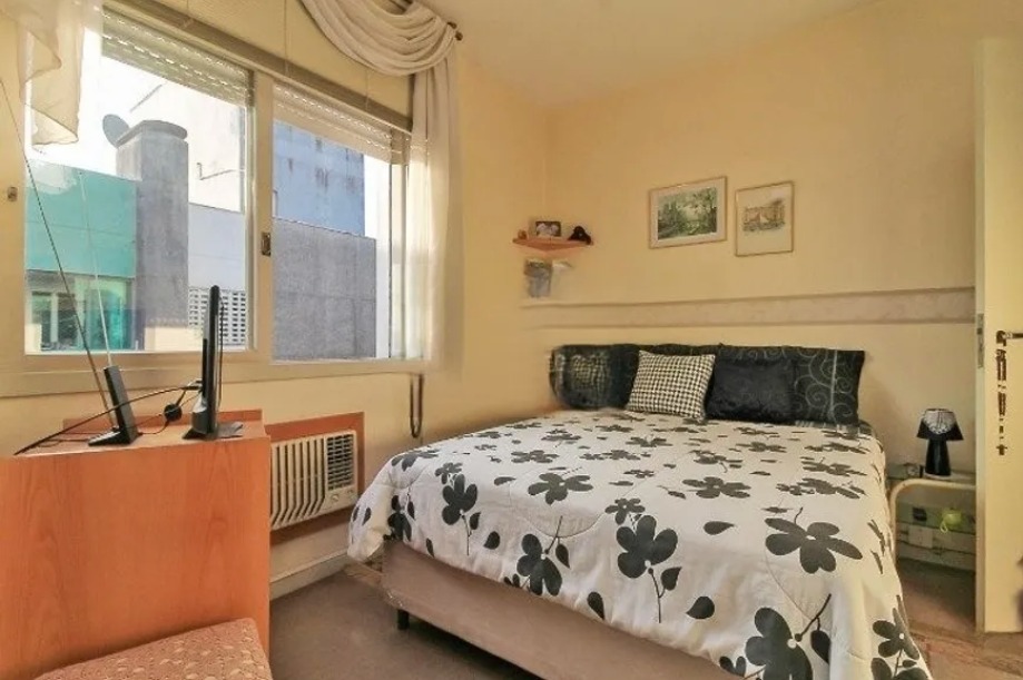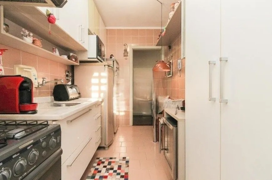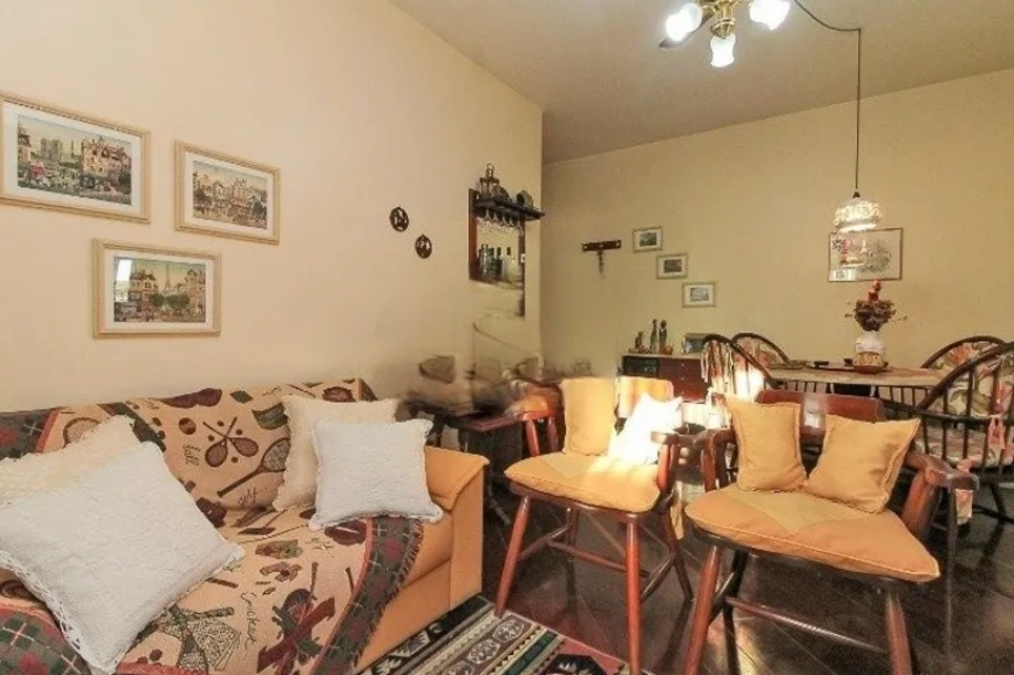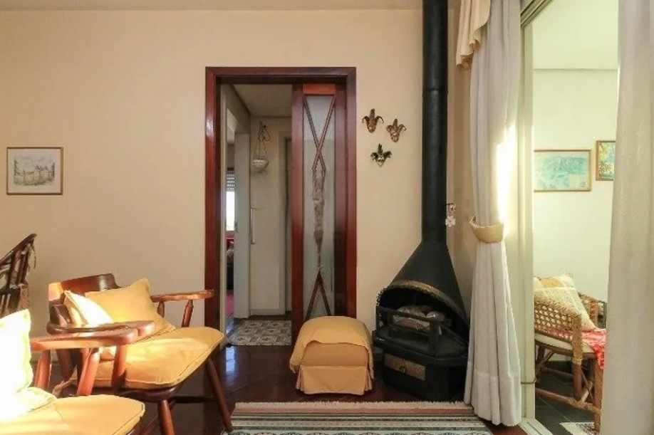 Apartamento SEMIMOBILIADO com 66m² privativos. Possui 2 quartos, banheiro social, banheiro de empregada, living amplo para dois ambientes com lareira, sacada com churrasqueira, cozinha, área de serviço separada. Com 1 vaga coberta.