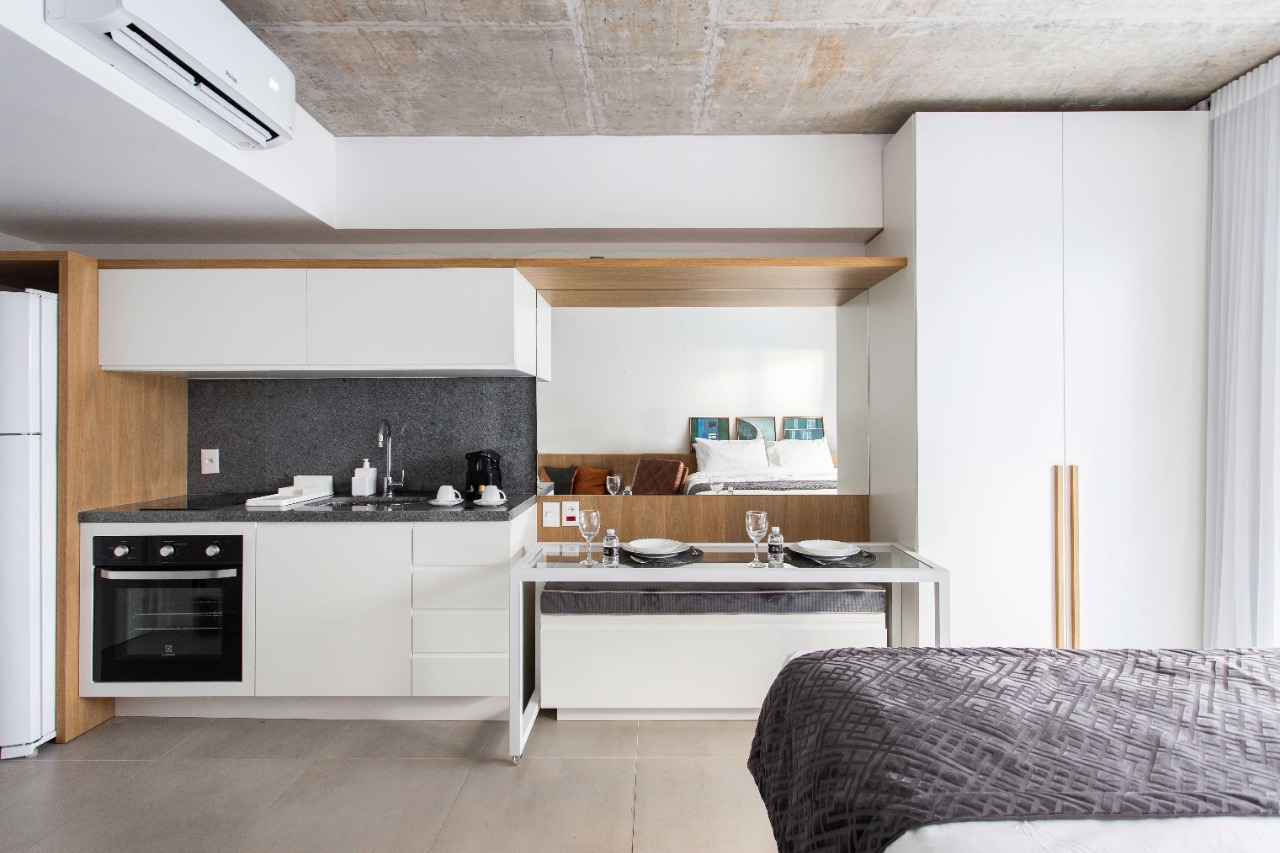 Apartamento Studio Gardem com 37m2 de área privativa. Possui 1 quarto, living, banheiro social, cozinha americana e pátio privativo em prédio moderno e sofisticado, excelente para locação por diária estilo AIRBNB.