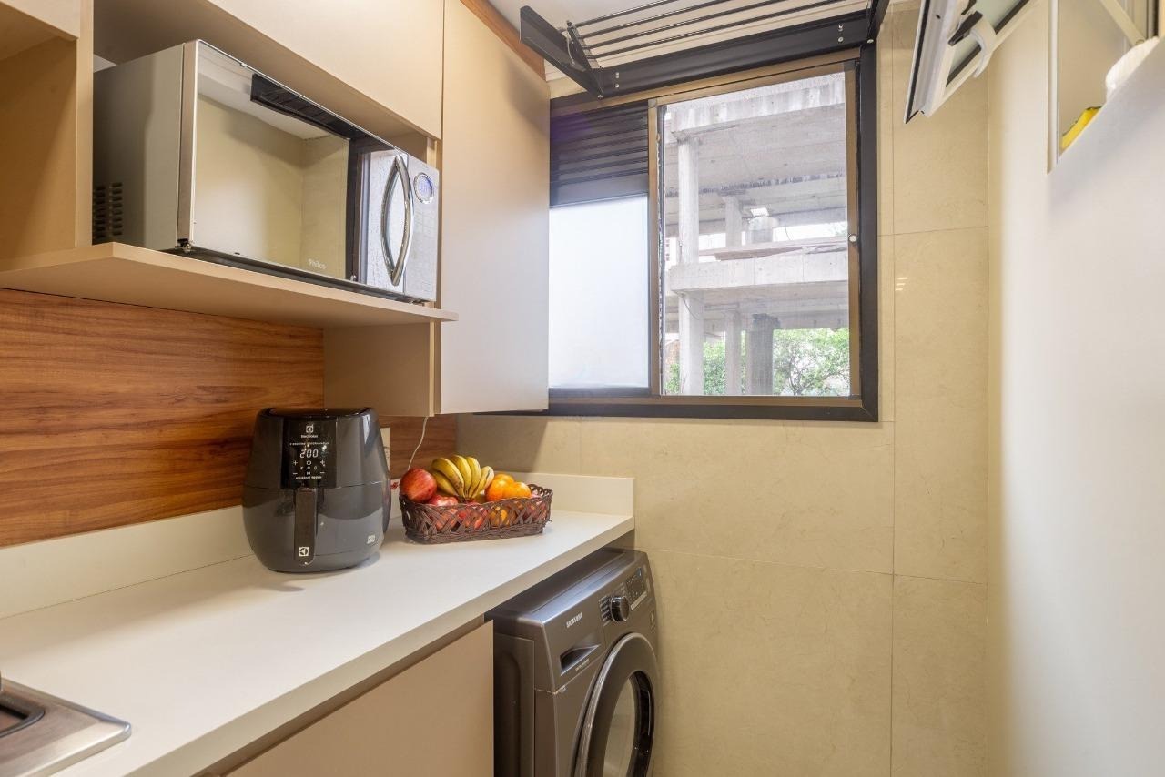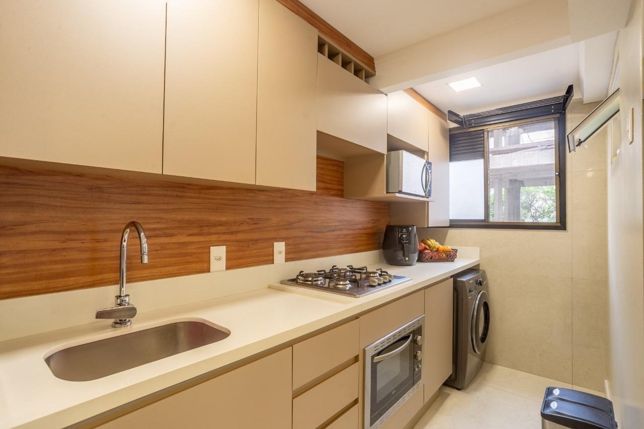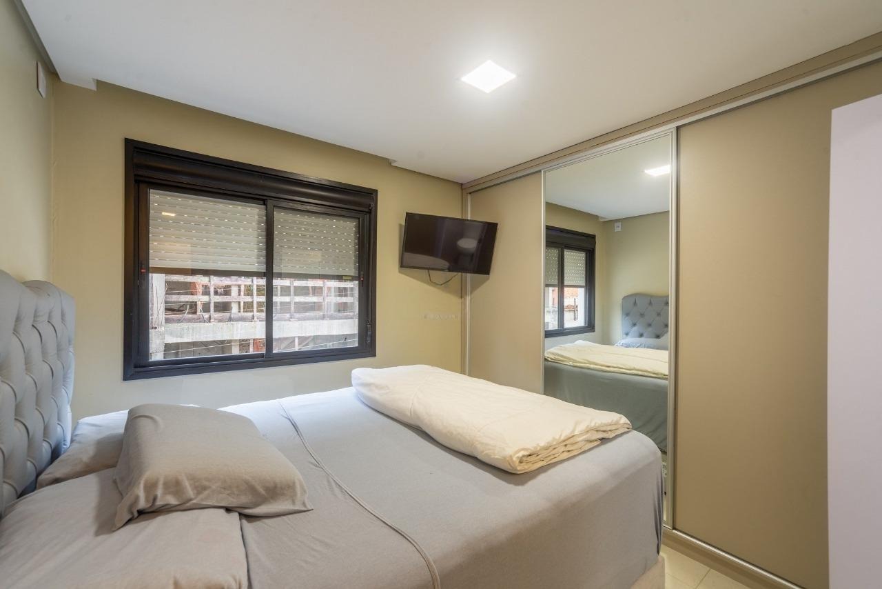 São 02 dormitórios sendo 01 suite, living 02 ambientes integrado com cozinha americana, churrasqueira, semi mobiliado, com 01 vaga de garagem coberta ( possibilidade de locação de 2ª vaga)