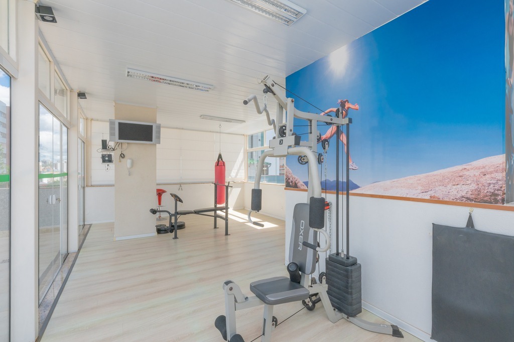 Condomínio: O Residencial Sollaris conta com uma infraestrutura essencial para um condomínio! Ele possui uma academia completa, incluindo equipamento para treino de boxe e um salão de festas com churrasqueira.
