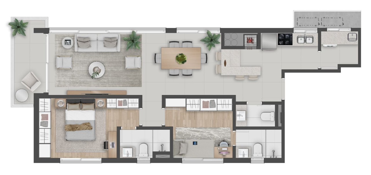 Apartamento com 83m2 de área privativa. Possui 2 quartos, sendo 2 suítes, living amplo para 2 ambientes com churrasqueira integrada, sacada, cozinha com área de serviço separada, lavabo e 1 vaga coberta. Opção de apartamento Garden.