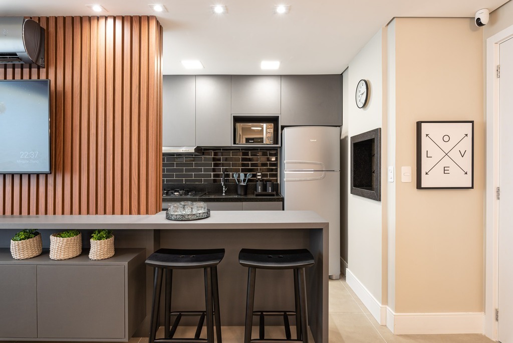 O banheiro social é funcional e bem distribuído, A cozinha americana é um convite à culinária, com um design moderno e prático. A área de serviço é um recurso valioso que torna o dia a dia mais eficiente.