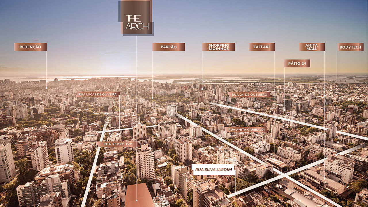 O bairro possui acesso por algumas das principais vias da cidade: Rua Anita Garibaldi, Rua Pedro Ivo, Avenida Carlos Gomes, Rua Eudoro Berlink, Rua Comendador Rheigantz e Av. Coronel Lucas de Oliveira. Os bairros nos arredores são: Bela Vista, Moinhos de Vento, Auxiliadora, Higienópolis, Boa Vista e Petrópolis.
