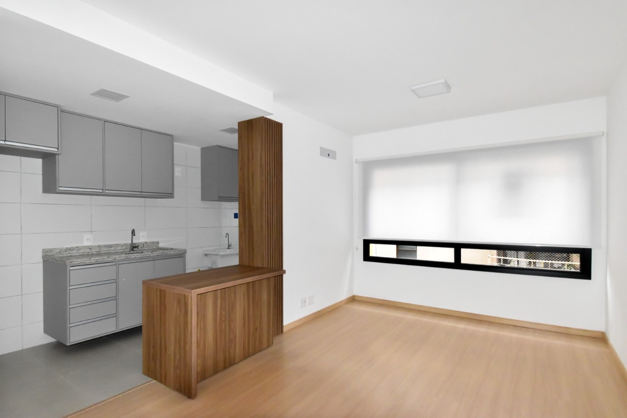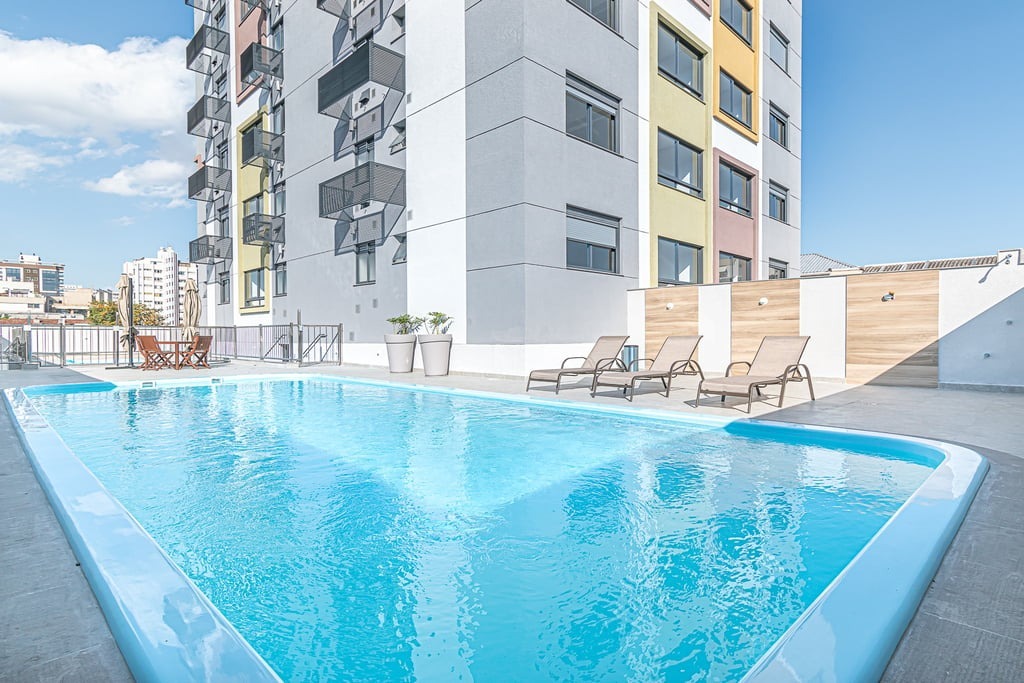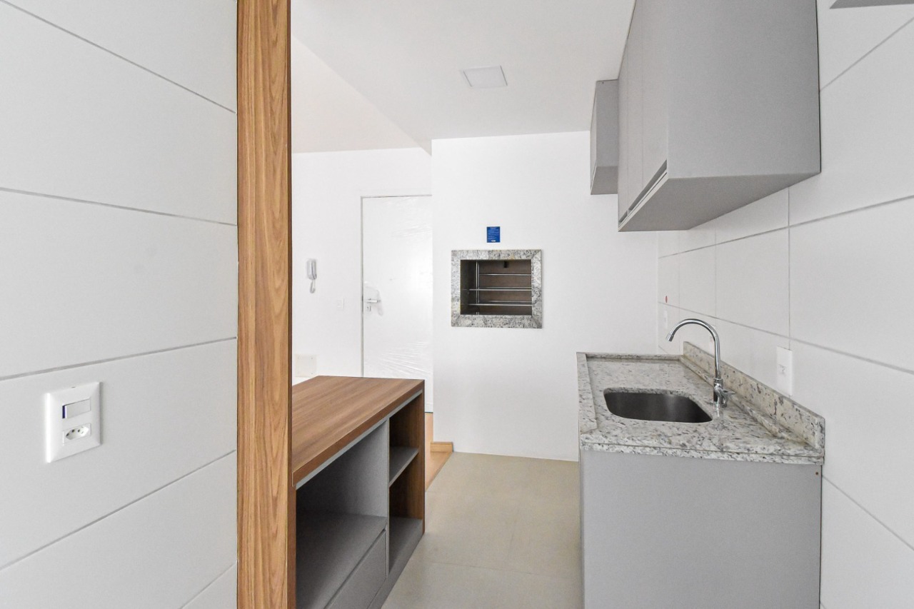 Apartamento semimobiliado com 81,47 m² de área privativa. Possui 3 dormitórios, sendo, um deles, suíte, living para dois ambientes, cozinha americana com móveis sob medida e com churrasqueira e área de serviço integrada. Com uma vaga para 2 carros (vaga dupla).