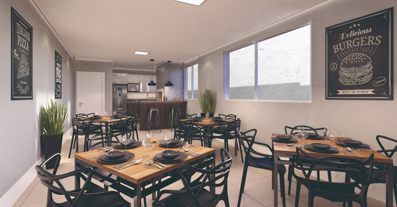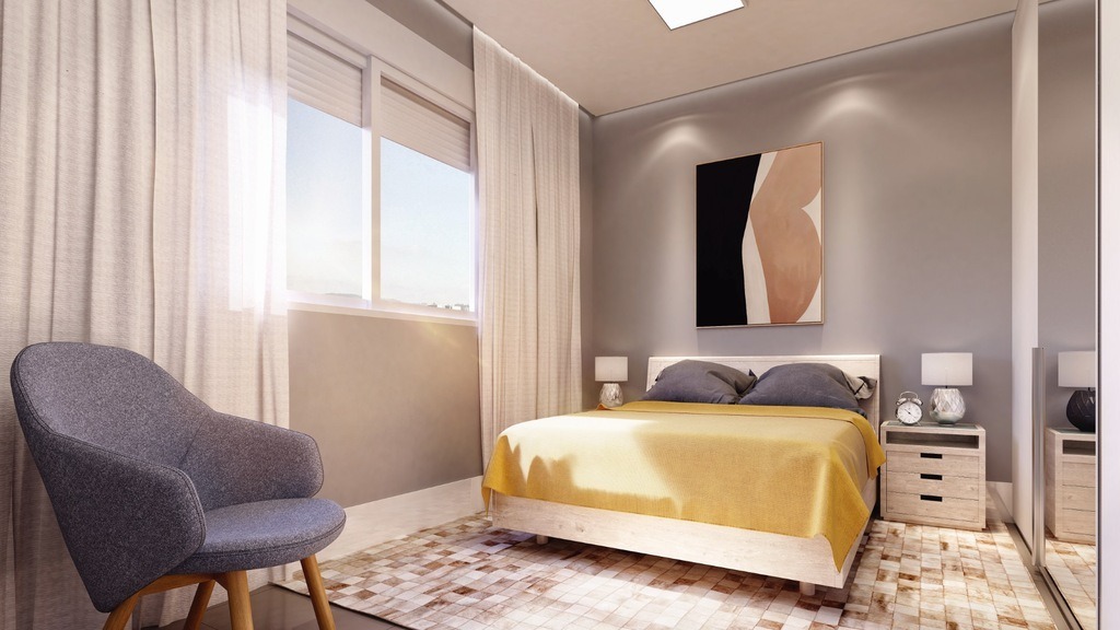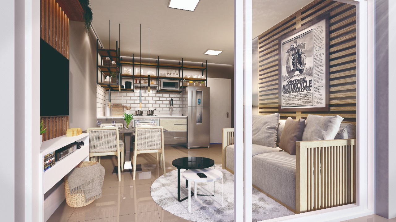 Apartamento com 33,35m2 de área privativa, 1 quarto, living integrado com a cozinha e banheiro social. Possui 1 vaga de garagem simples.