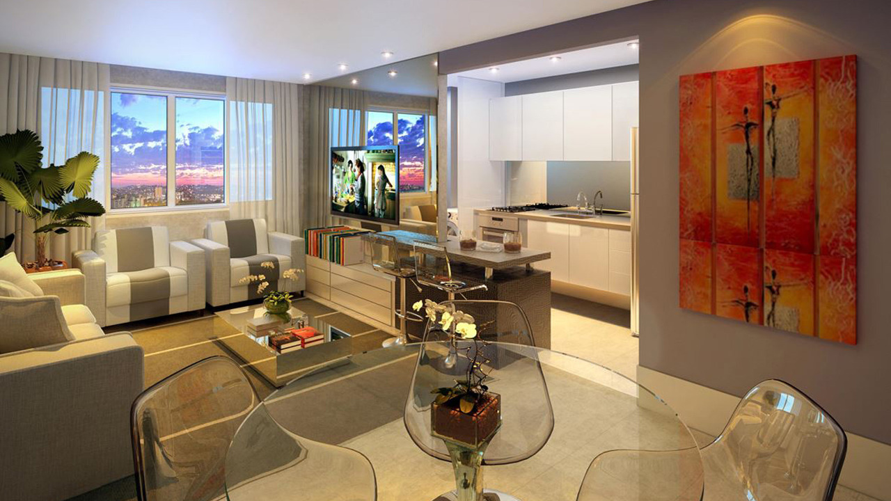 Apartamento com 2 quartos com 60,37m2 de área privativa. Possui 2 quartos sendo 1; uma suíte, sala de estar, cozinha com área de serviço, 01 banheiro auxiliar e 1 vaga na garagem.
