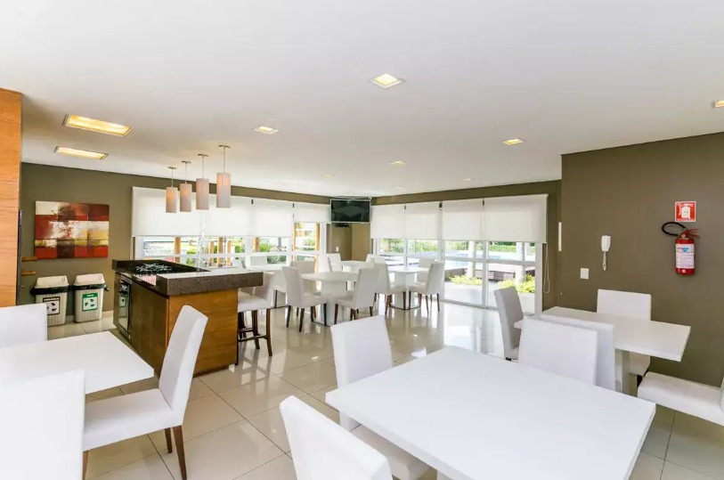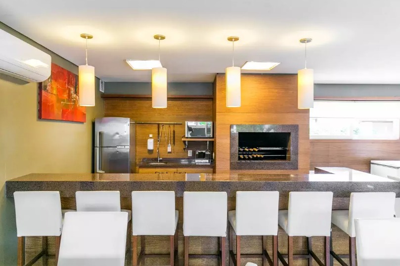 A cozinha americana com churrasqueira é perfeita para momentos de descontração, e a área de serviço integrada traz ainda mais funcionalidade ao seu dia a dia. Além disso, você contará com uma vaga de garagem para sua conveniência.