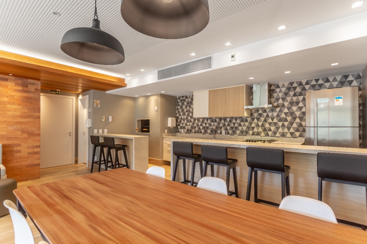Condomínio: O With possui bicicletário, churrasqueira coletiva, academia, jardim, piscina adulto, salão de festas e terraço coletivo. Ele também conta com circuito de TV, depósito, vestiários, elevador, gerador, gás central, portaria e porteiro eletrônico.